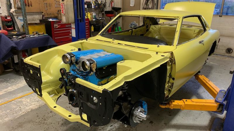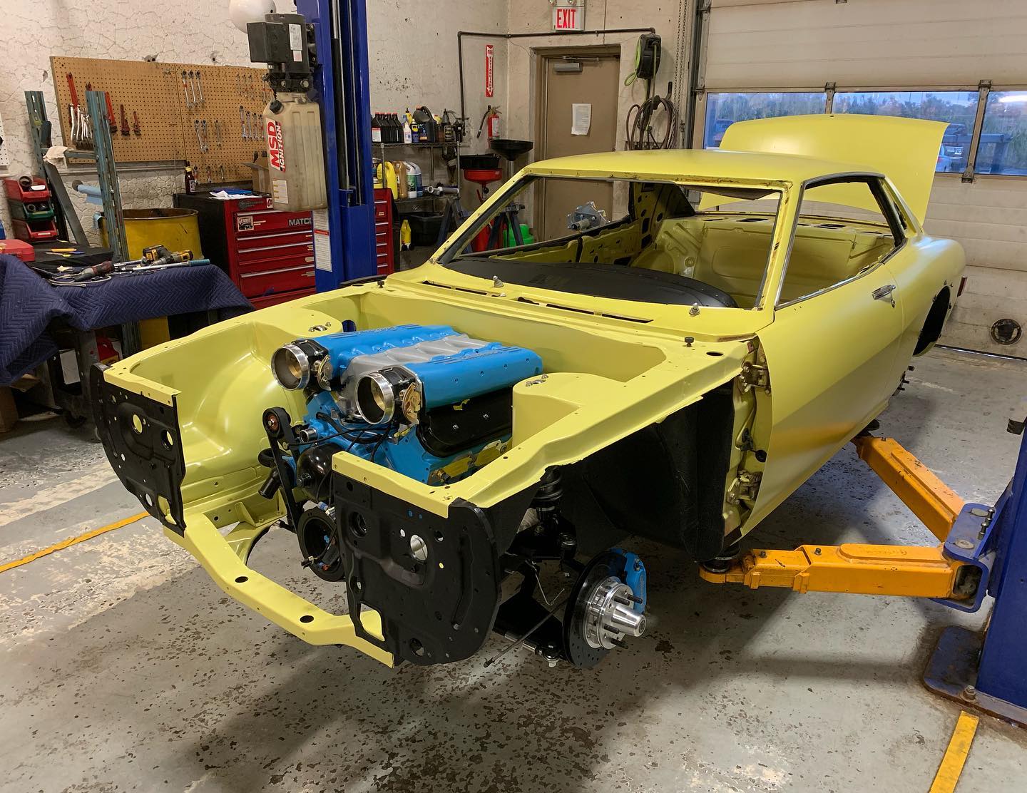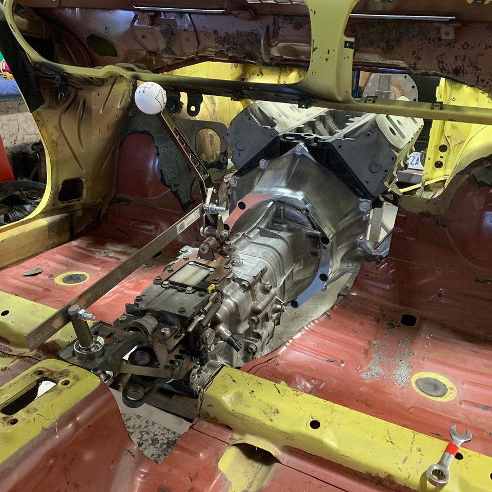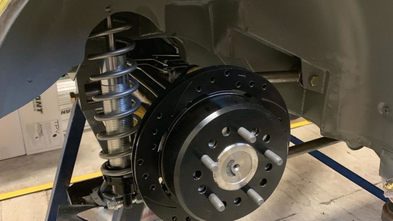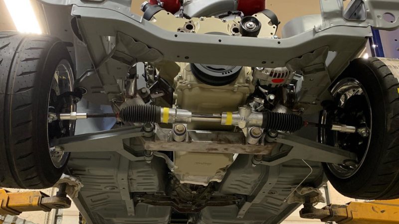 As you can imagine with all of the newly fitted larger components there was extensive fabrication that had to take place in the Engine compartment, interior cabin and trunk area. The size of the driveline required the Crew at JH Restorations to remove the original firewall and fabricate a new one 2.5” rearward in the vehicle, fabricate a new transmission tunnel as well as the area above the rear differential. All these changes also affect driver controls such as pedals and steering wheel placement in the car. With all these modifications the seat location was unchanged, although the seat finds itself in the fully rearward position most of the time.