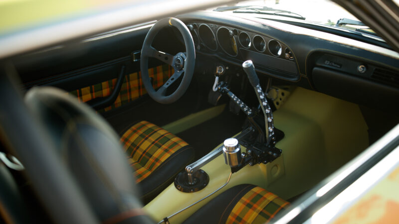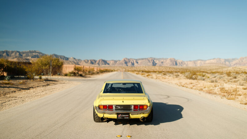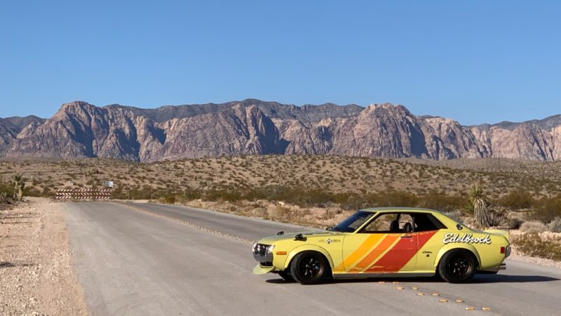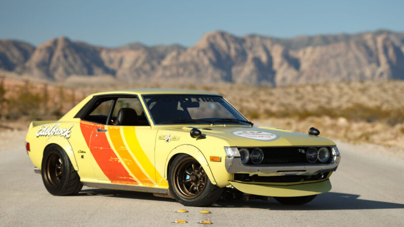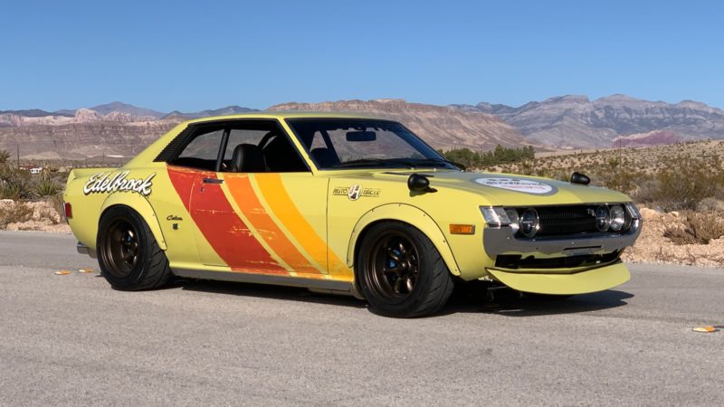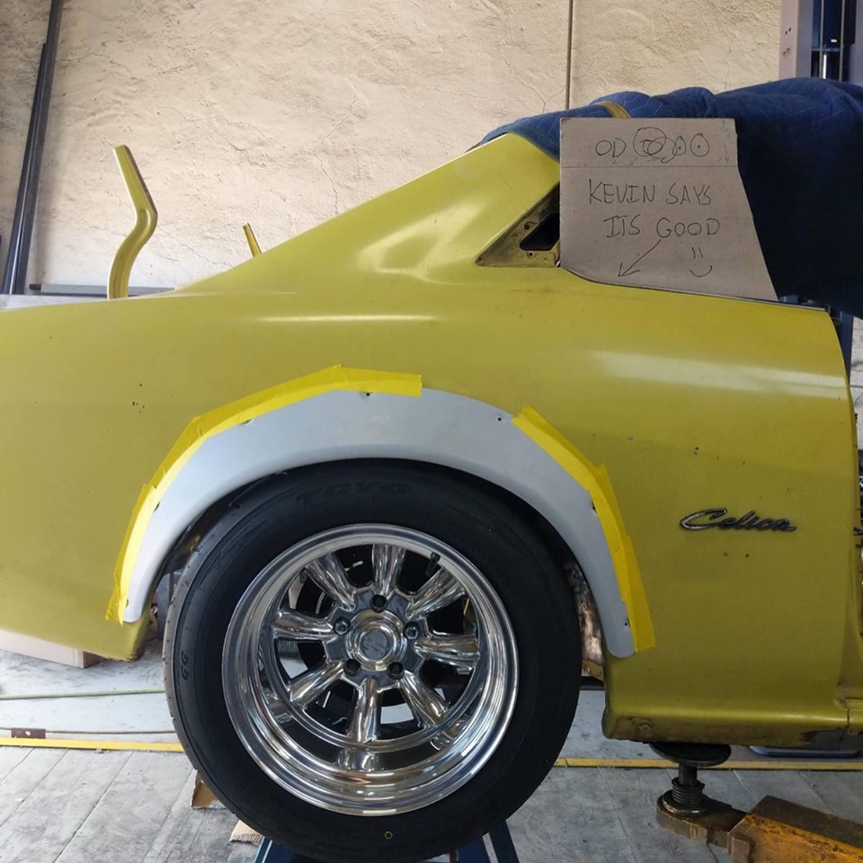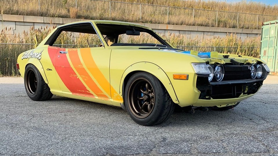 The idea behind this 73' Celica was to build a "What-if" car, "What if Toyota went Trans-Am in the 70's?" Nicknamed the Toyko Trans Am or TTA, it would be built like it would have been built in decades past, then forgotten about, left in a barn to one day be brought back to life, but with the handling and power of the modern era. To achieve this the entire suspension was removed and re-engineered, in house, to work in conjunction with a modern power plant in the form of a 5.7L Chevrolet LS engine mated to a CD009 Transmission originally fitted to a Nissan 370Z with a Ford 8.8 out back. With a 6th gear ratio of .794 and a 23.1” tall tire this is not going to be your typical street driver, the car revs high and comes out of the hole like a scared rabbit, and with its stiff clutch it's not for the faint of heart.