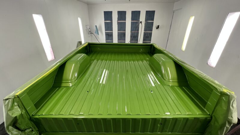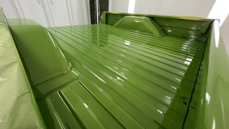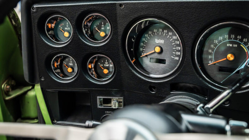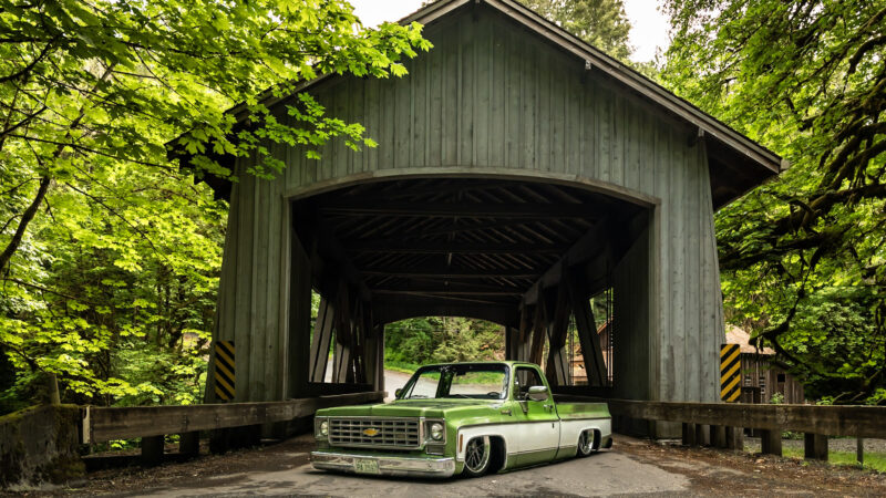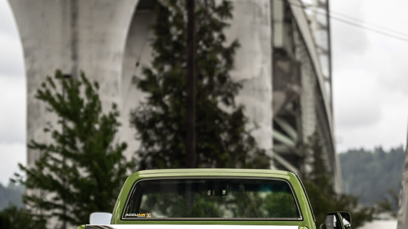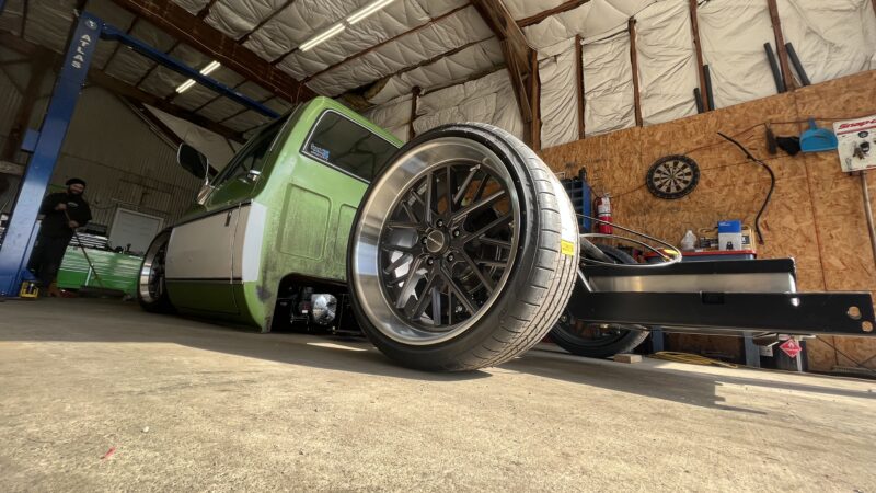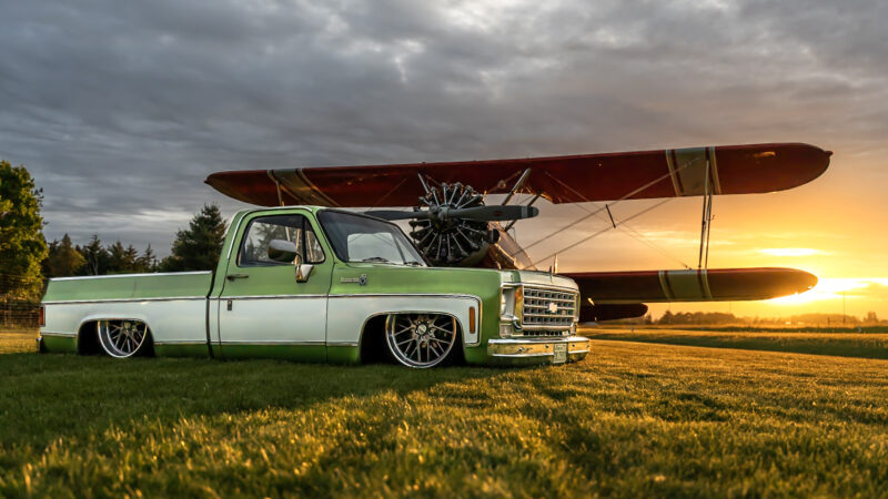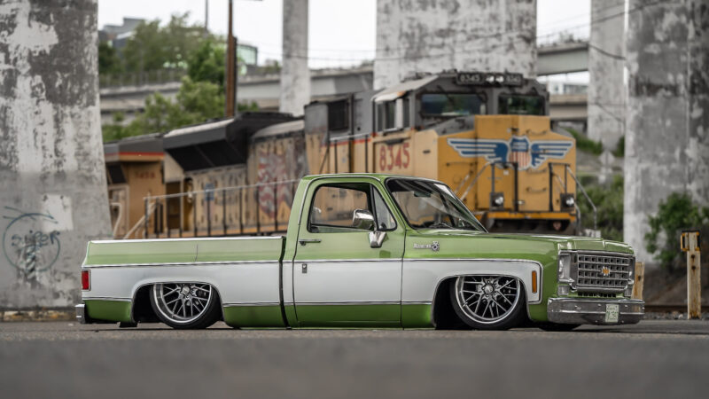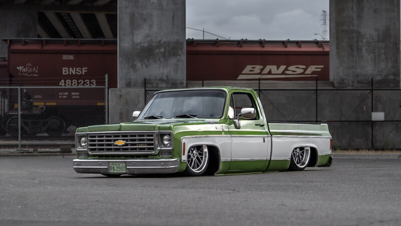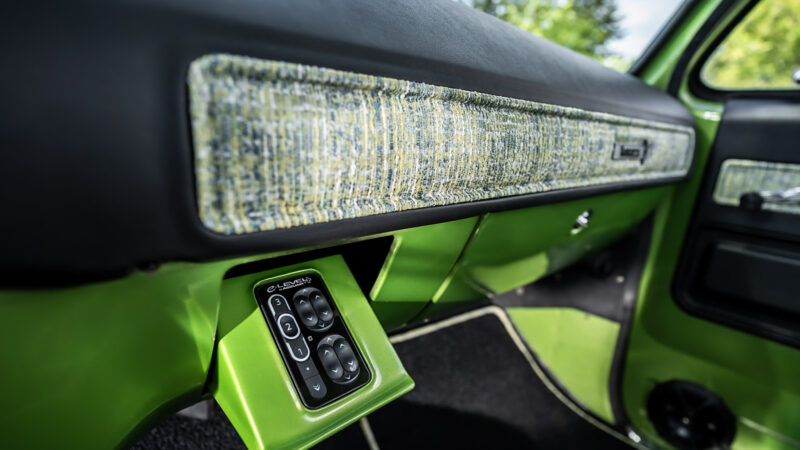 Like most people, my passion for Squarebodies began at a fairly young age. Fast forward 30 years and a few Squarebodies later, I bought my 1976 C10 Bonanza in June of 2022 with every intention of giving it a 5/7 drop and cruising with my sons. After speaking with a friend and local chassis shop owner, we all agreed the truck needed to be bagged, quickly spiraling into what it is today. With the help of Nick Muros at Choice Chassis, the truck was built rather quickly with the right group of people helping out. The truck sits on a Choppin Block Extreme chassis, with Accuair suspension, riding on 22” Corsart Kingpins. The truck is powered by a 5.3L LM7 LS engine, built by EFI solutions. The interior came together with the help of Phil Cato at Cato’s Custom Upholstery, along with Dakota Digital Squarebody Syndicate Series gauges and a Squarebody Syndicate shortened steering column. The bed floor was taken from a long bed, cut down and bolted back into the original shortbed and getting a fresh coat of BASF-Limco Spring Green paint. The truck was built on a crazy amount of overtime and was eventually named “Time N’ Half” by Ronnie Wetch.