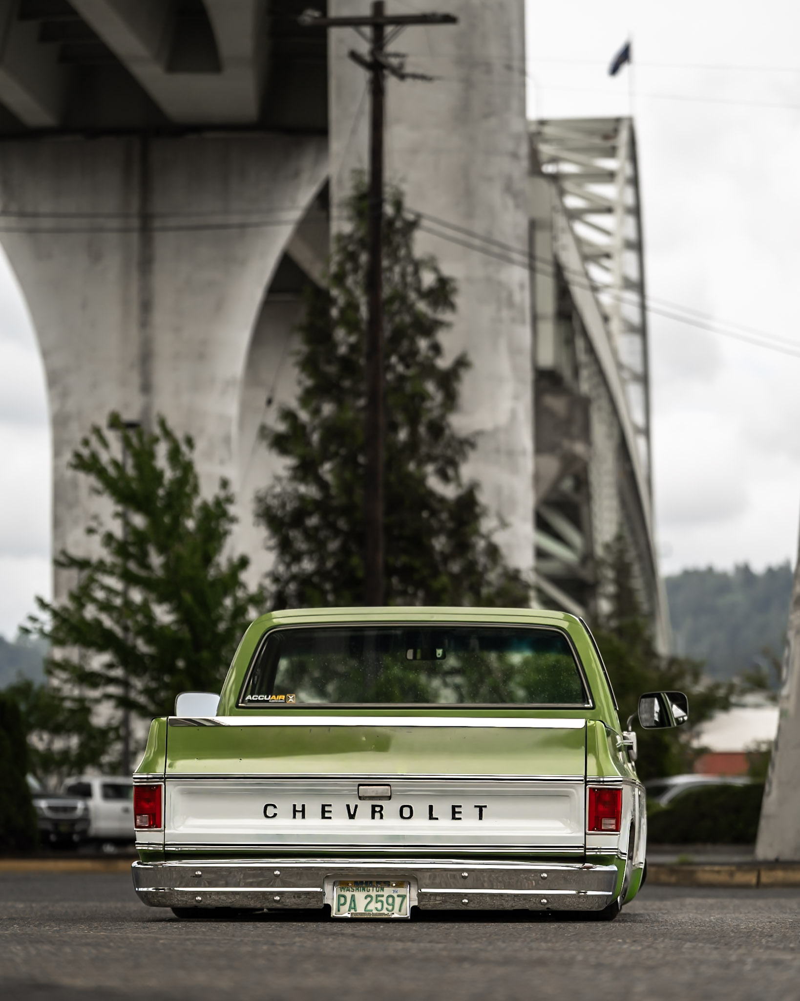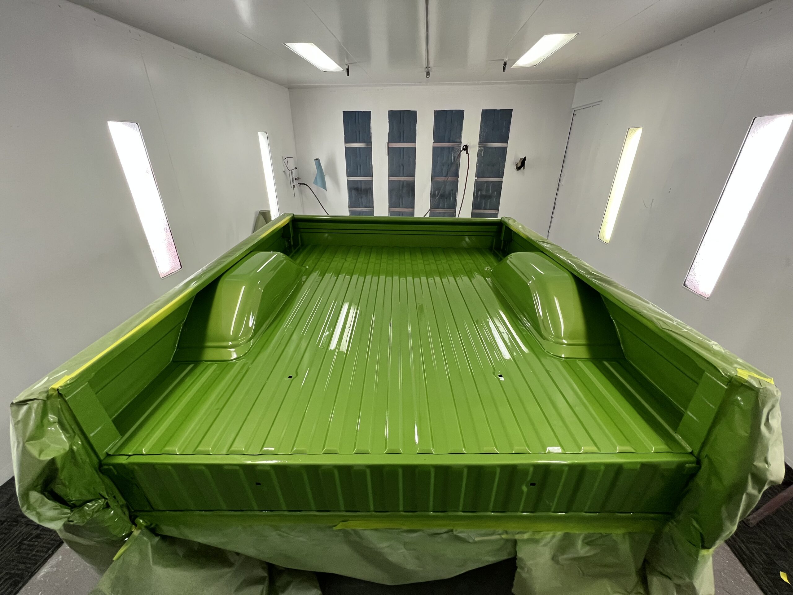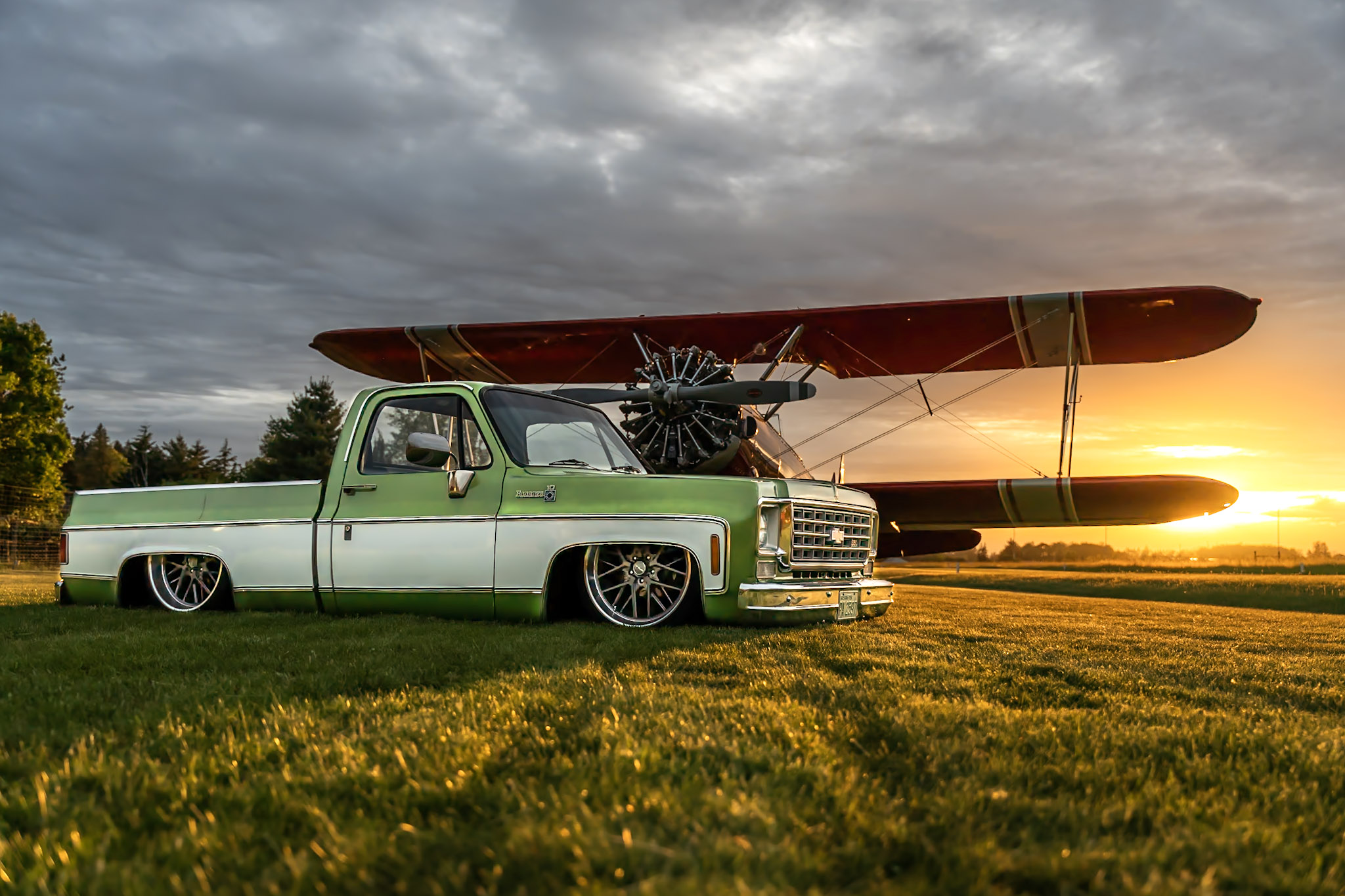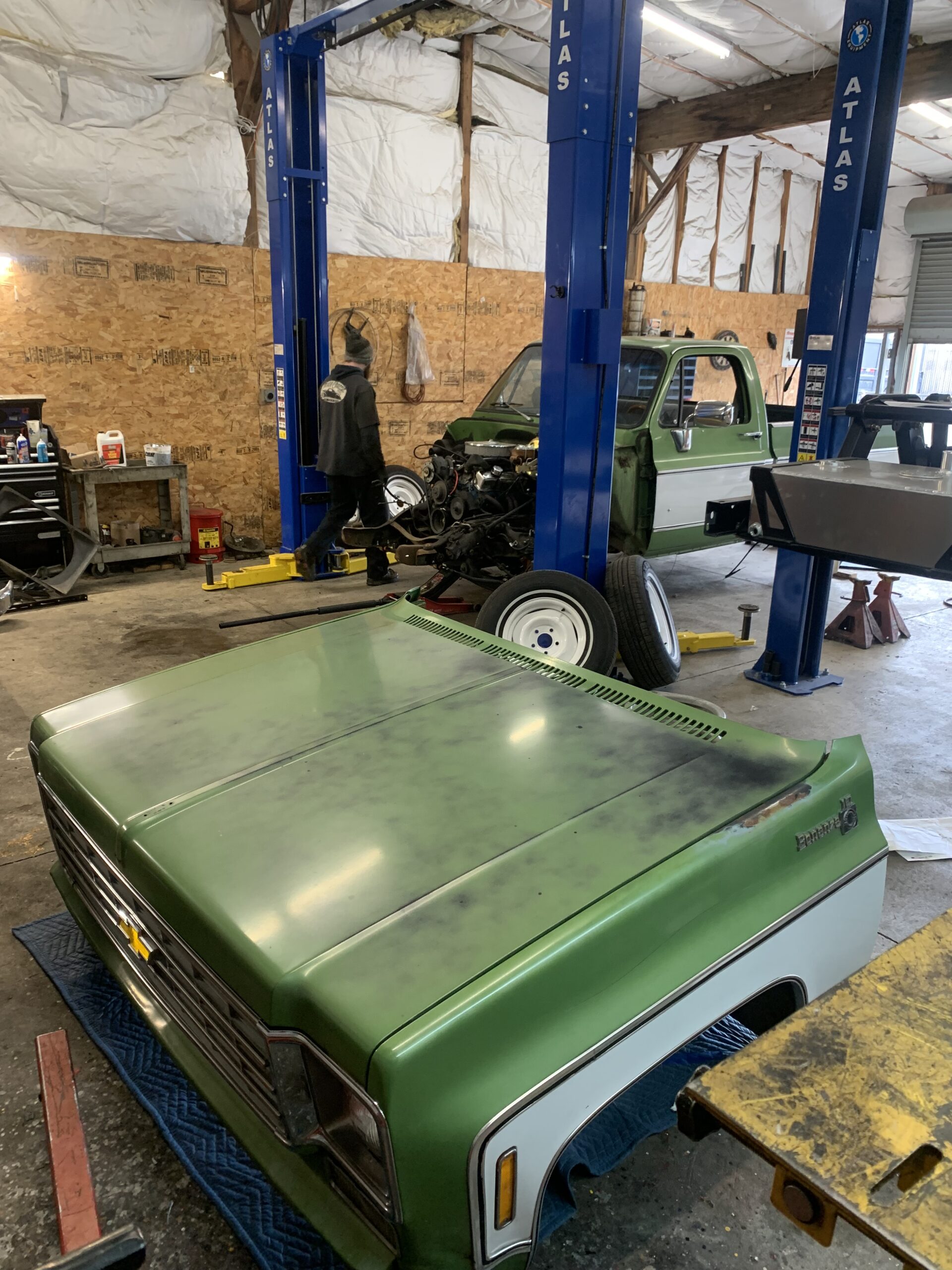 Like most people, my passion for Squarebodies began at a fairly young age. Fast forward 30 years and a few Squarebodies later, I bought my 1976 C10 Bonanza in June of 2022 with every intention of giving it a 5/7 drop and cruising with my sons. After speaking with a friend and local chassis shop owner, we all agreed the truck needed to be bagged, quickly spiraling into what it is today. With the help of Nick Muros at Choice Chassis, the truck was built rather quickly with the right group of people helping out. The truck sits on a Choppin Block Extreme chassis, with Accuair suspension, riding on 22” Corsart Kingpins. The truck is powered by a 5.3L LM7 LS engine, built by EFI solutions. The interior came together with the help of Phil Cato at Cato’s Custom Upholstery, along with Dakota Digital Squarebody Syndicate Series gauges and a Squarebody Syndicate shortened steering column. The bed floor was taken from a long bed, cut down and bolted back into the original shortbed and getting a fresh coat of BASF-Limco Spring Green paint. The truck was built on a crazy amount of overtime and was eventually named “Time N’ Half” by Ronnie Wetch.