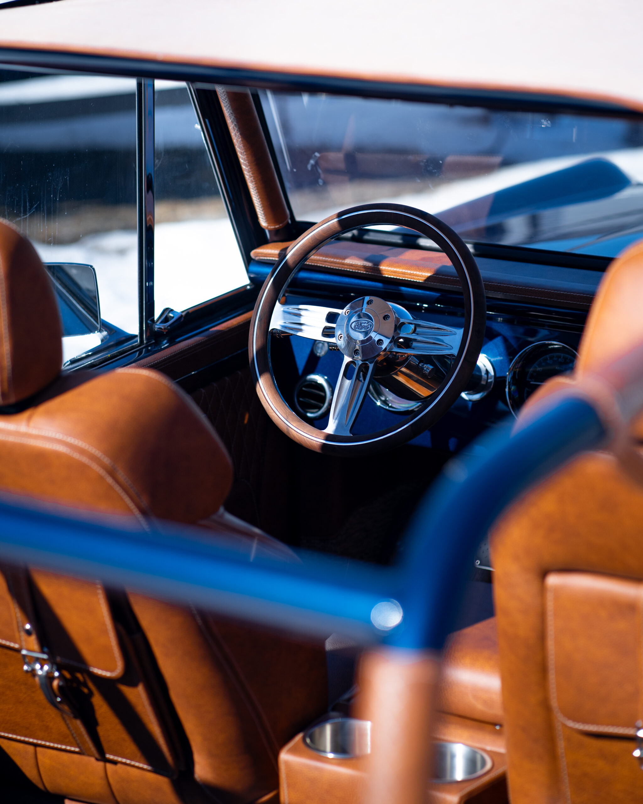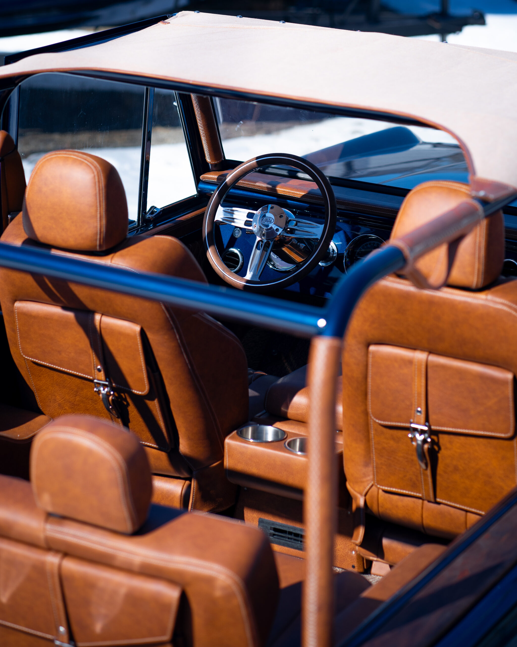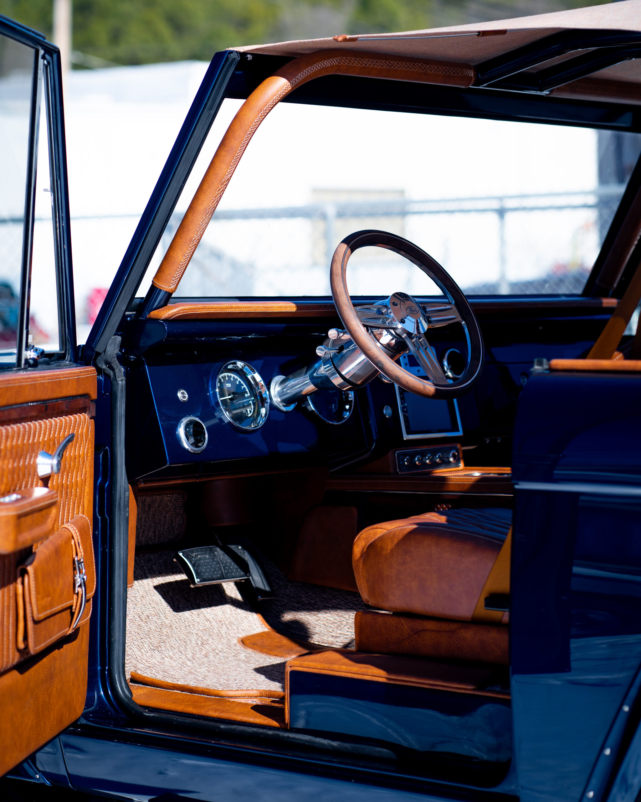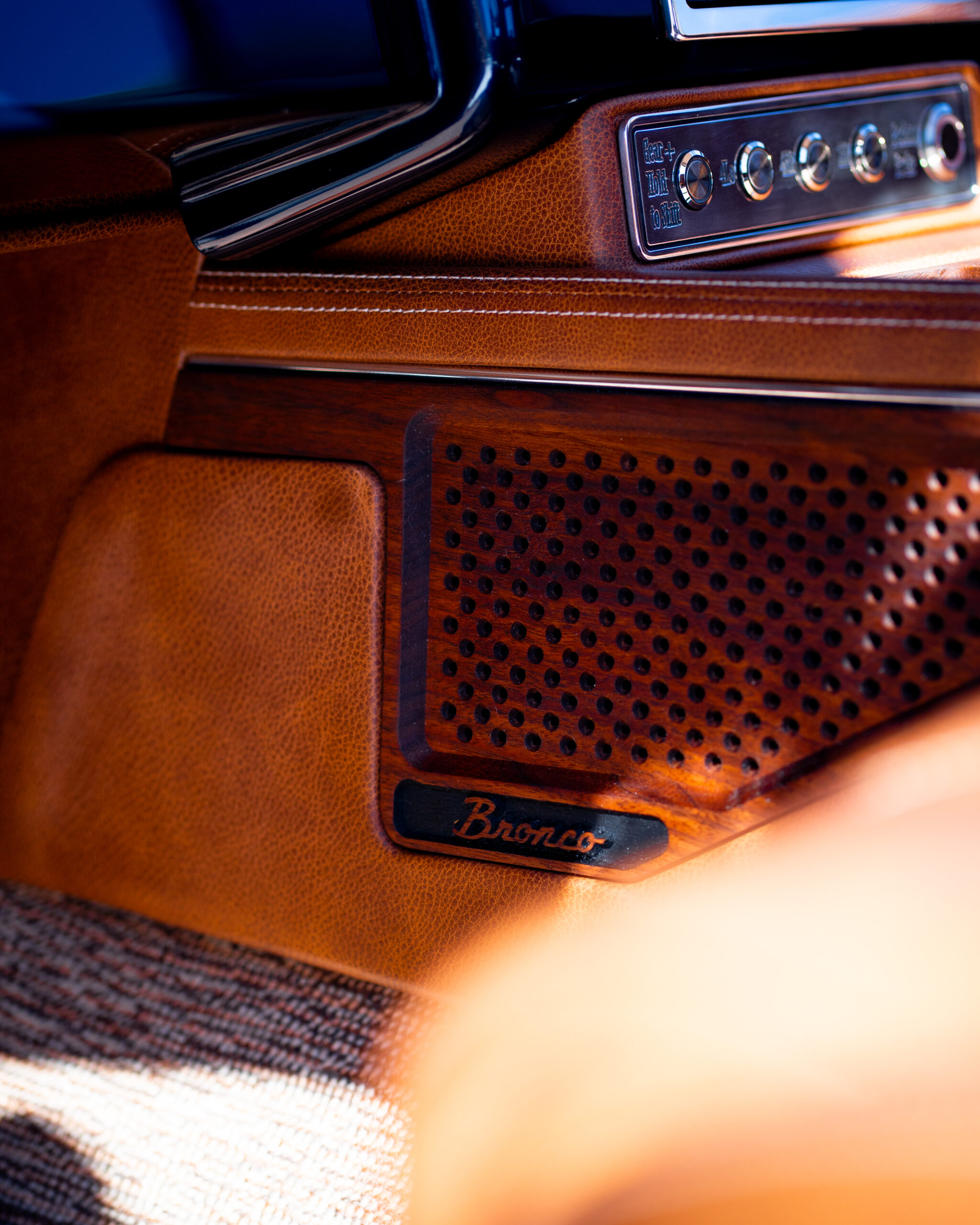 Step inside the realm of automotive craftsmanship with Renegade Customs and Covers' awe-inspiring 1977 Custom Ford Bronco interior. This is more than just an interior; it's a testament to the artistry and dedication of a team committed to pushing the boundaries of what's possible. From the moment you lay eyes on this interior, it's clear that every detail has been meticulously crafted to perfection. What sets this Bronco apart is that virtually everything you see has been handcrafted in-house, from the custom billet trims to the black walnut accents that adorn the cabin. Speaking of black walnut, each plank was carefully selected from locally sourced materials, ensuring that only the finest wood was used in the fabrication process. The result is a stunning display of natural beauty, with the rich tones of the walnut adding warmth and character to every corner of the interior. But perhaps the true star of the show is the luxurious leather provided by Moore & Giles. Renowned for their unparalleled quality, these hides elevate the interior to new heights of opulence and sophistication. From the seating to the speaker bezels and floor, every surface exudes a sense of luxury that is simply unmatched. Behind every masterpiece lies a team of dedicated individuals, and this Bronco interior is no exception. Countless hours of painstaking craftsmanship and attention to detail have gone into bringing this vision to life, and the result is nothing short of breathtaking. Renegade Customs and Covers are grateful for the support of the owner and builder, Ronnie's Hot Rods, who entrusted them with bringing this vision to fruition. Together, they've created a work of art that is sure to leave a lasting impression on anyone who has the privilege of experiencing it firsthand.