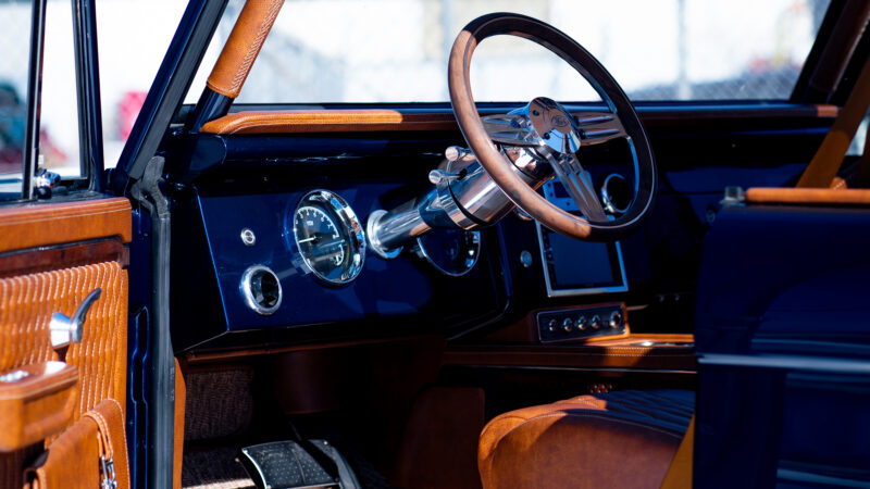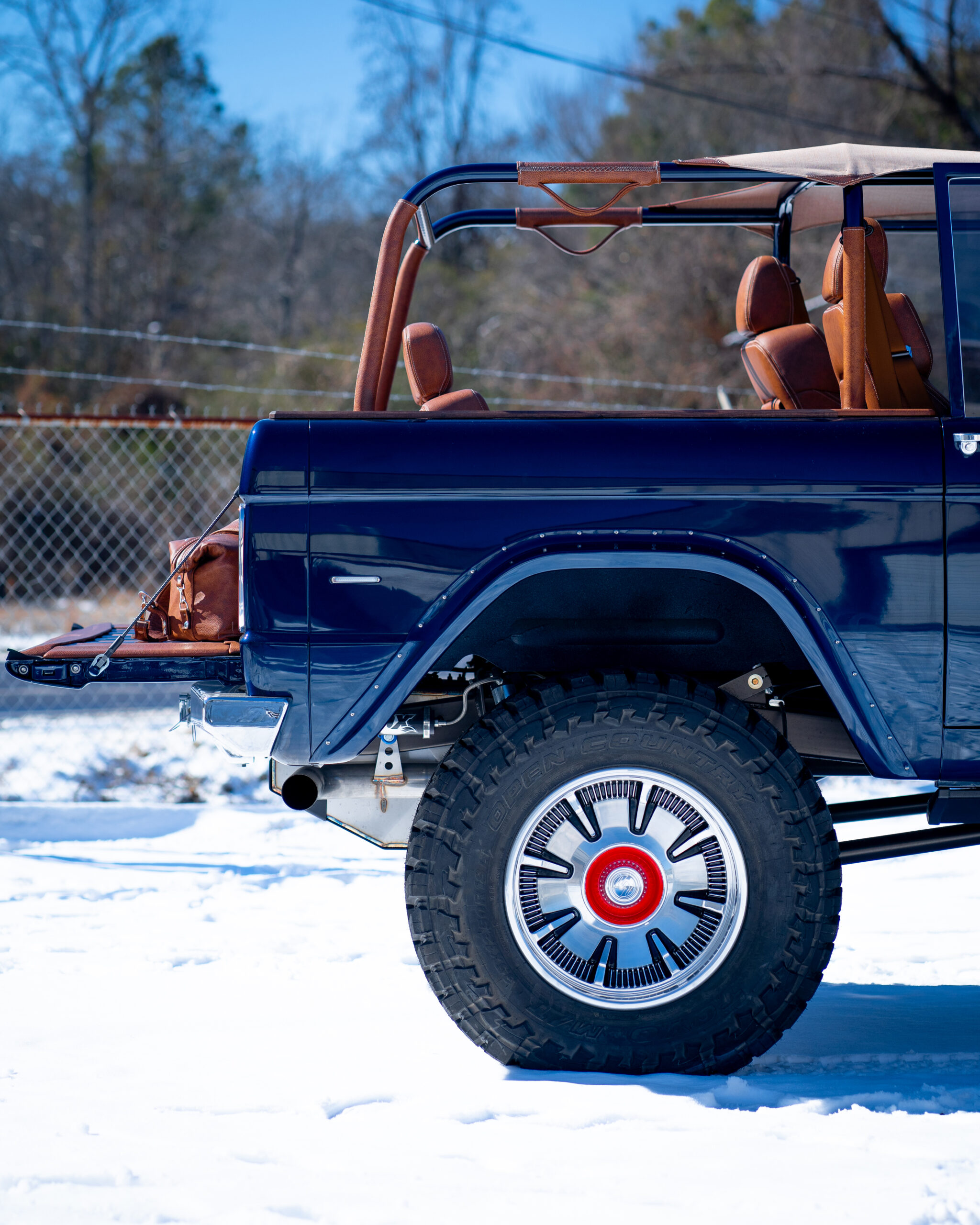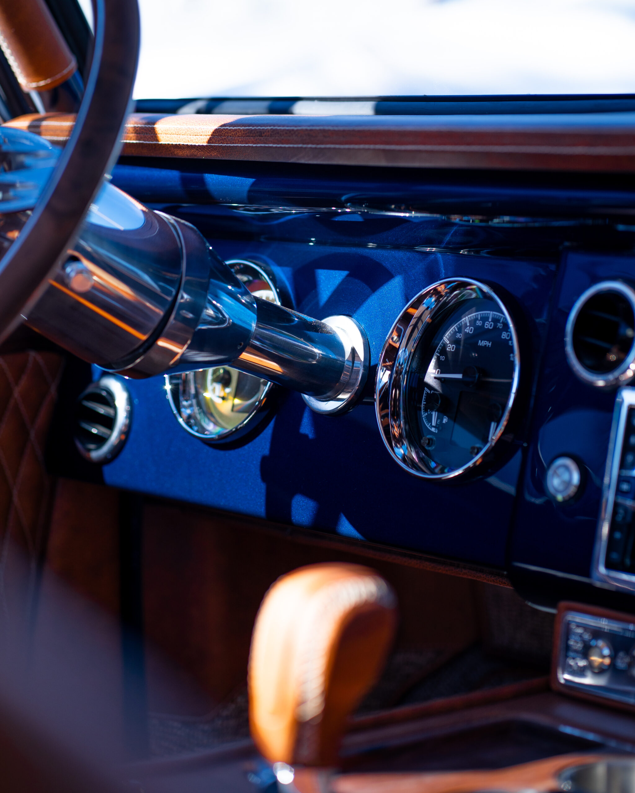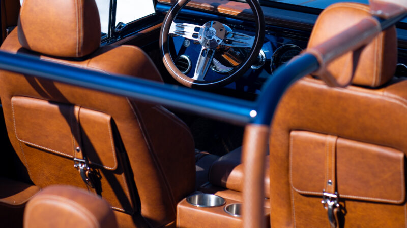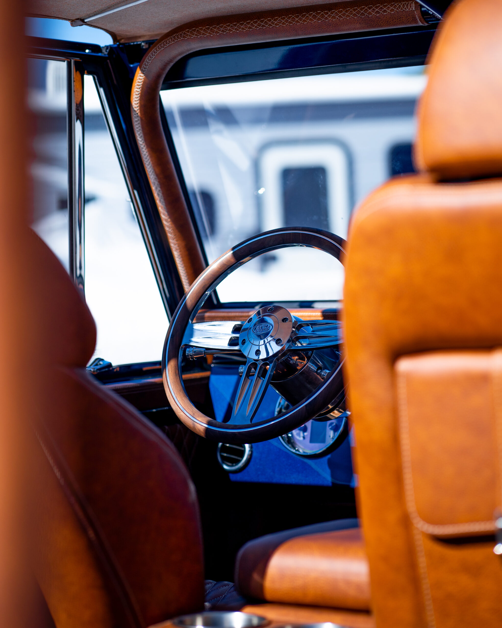 Step inside the realm of automotive craftsmanship with Renegade Customs and Covers' awe-inspiring 1977 Custom Ford Bronco interior. This is more than just an interior; it's a testament to the artistry and dedication of a team committed to pushing the boundaries of what's possible. From the moment you lay eyes on this interior, it's clear that every detail has been meticulously crafted to perfection. What sets this Bronco apart is that virtually everything you see has been handcrafted in-house, from the custom billet trims to the black walnut accents that adorn the cabin. Speaking of black walnut, each plank was carefully selected from locally sourced materials, ensuring that only the finest wood was used in the fabrication process. The result is a stunning display of natural beauty, with the rich tones of the walnut adding warmth and character to every corner of the interior. But perhaps the true star of the show is the luxurious leather provided by Moore & Giles. Renowned for their unparalleled quality, these hides elevate the interior to new heights of opulence and sophistication. From the seating to the speaker bezels and floor, every surface exudes a sense of luxury that is simply unmatched. Behind every masterpiece lies a team of dedicated individuals, and this Bronco interior is no exception. Countless hours of painstaking craftsmanship and attention to detail have gone into bringing this vision to life, and the result is nothing short of breathtaking. Renegade Customs and Covers are grateful for the support of the owner and builder, Ronnie's Hot Rods, who entrusted them with bringing this vision to fruition. Together, they've created a work of art that is sure to leave a lasting impression on anyone who has the privilege of experiencing it firsthand.