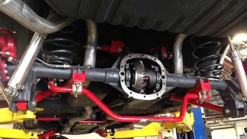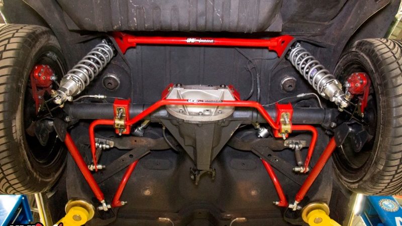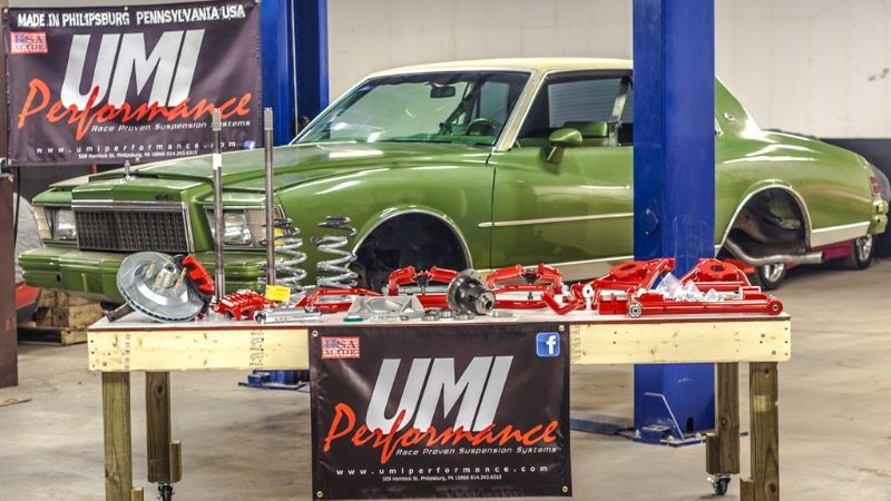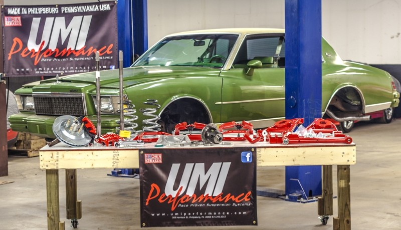 - UMI Performance - upper and lower a-arms with taller ball joints, 1.5” of additional spindle height, UMI 1-1/4” front sway bar, UMI upper and lower control arms with Roto-Joints, UMI ¾” pro-touring adjustable rear sway bar