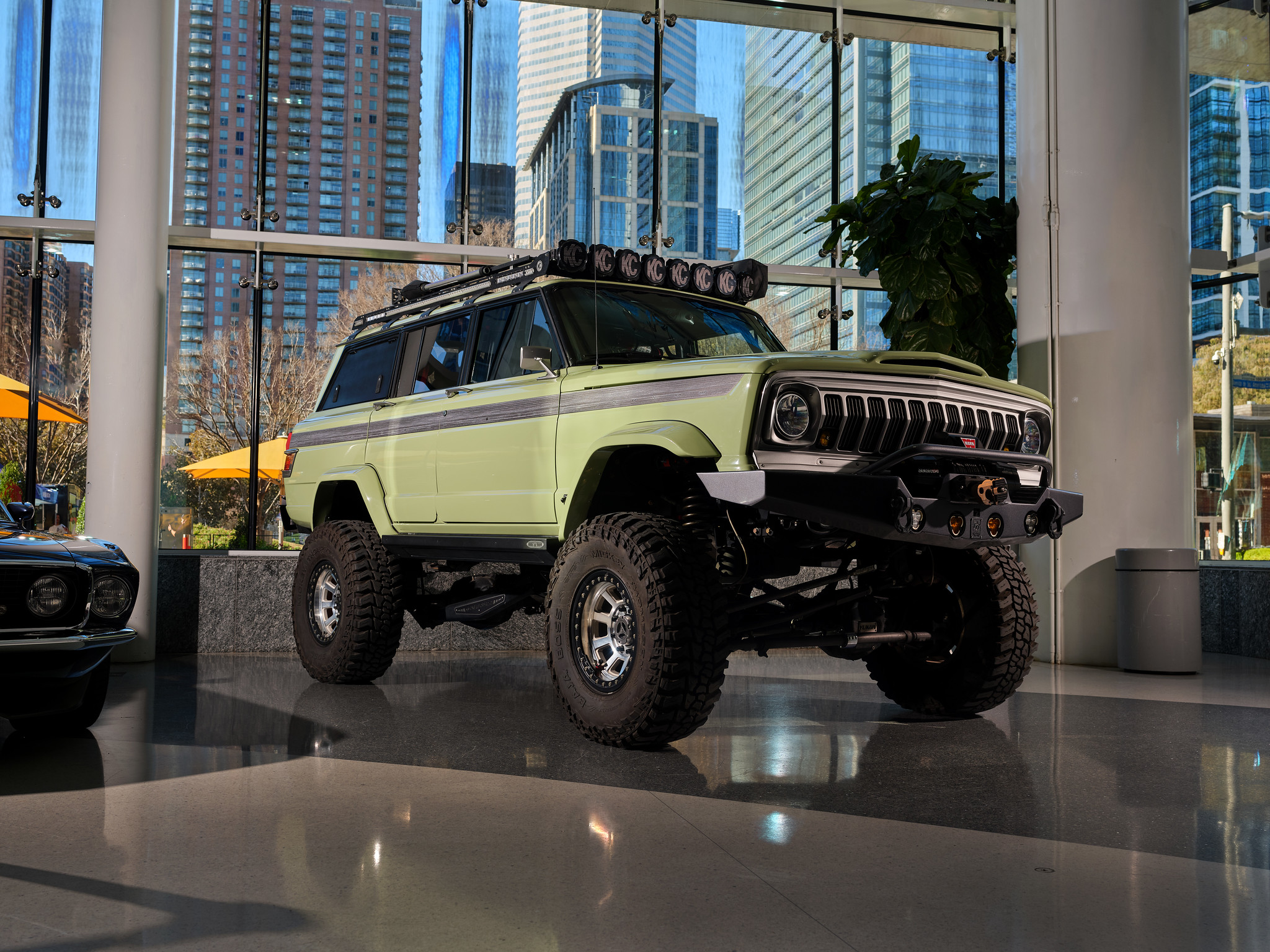 - KC light rack modified to fit the Wagoneer