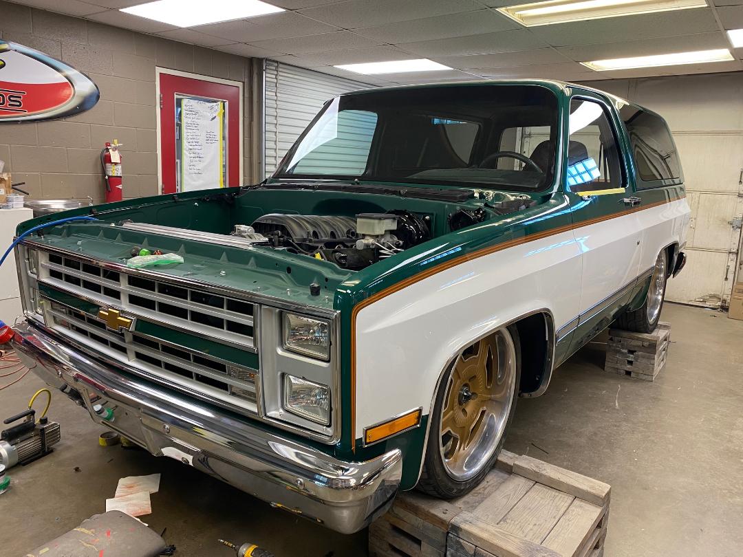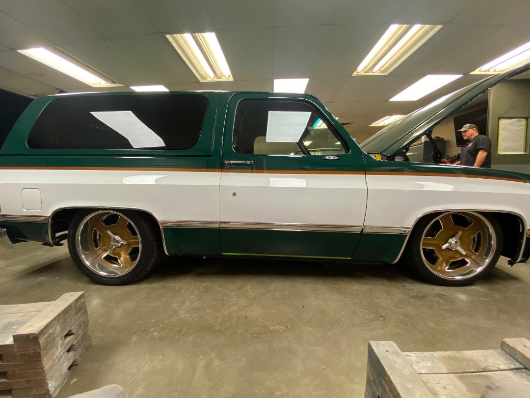 Marco... Our GT3 inspired Build-a-Square Level 3 K5. Started out with the first TCI Engineering Coilover Conversion for the 2wd K5 platform. This gives Marco the stance needed for carving up any highway, and the lowered look desired. Braking from Wilwood helps slowing this one down. Plenty of power from a Lonestar Horsepower tuned LT 6.2, and 8L90 transmission from Apache Transmission, both here in Lubbock. The PPG Racing Green/Summit White Paint was sprayed over the smoothed over and gapped body and shell. One Piece Products Quarter Panel Flush Glass and a Fesler USA Flush Mount Windshield modernize the look of the Glass. Pulling more inspiration from Porsche, we worked with Apex Auto Leather on the "Retro" style Interior. From the High Back front seats to the small woodgrain inserts, it sure feels sporty behind the wheel. JDGlassworks worked their magic wraping all the interior panels, and also with the custom audio featuring the latest Kicker products. Custom coated 20inch Raceline Scoundrel Wheels and Nitto 555 G2 tires keep this one planted on the asphalt. This build was finished to lead the way on our 2024 Dash to Nash road tour from Lubbock, to Nashville for the Triple Crown of Rodding. Marco did just that, stopping at many of our pals shops along the way on the 1300+ mile trip!