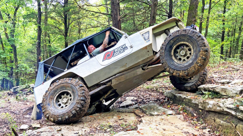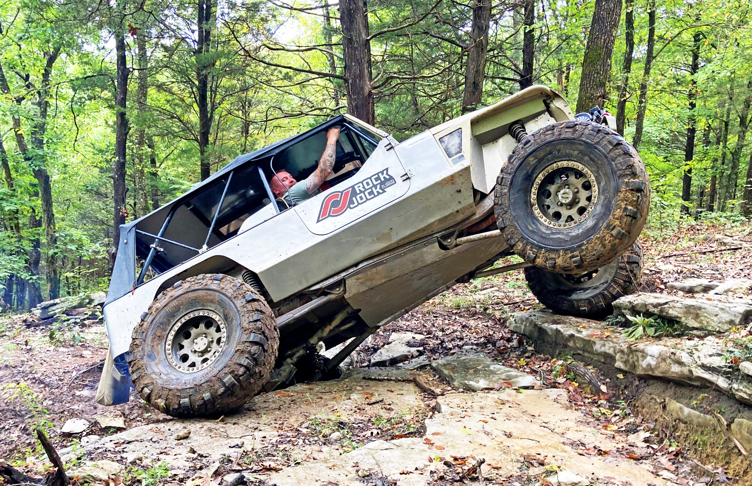 What was built includes an Aqualu CJ8 aluminum body with TJ front clip, stretched Jeep TJ frame, Genright long-arm with aluminum arms and RockJock Johnny Joint rod ends, RockJock Antirock sway bars, Currie fabricated 9" front and rear axles with Wilwood brakes, an LS-1 engine and 4L80 transmission, Atlas 3.8:1 race case transfer case 1350 flanges and 1350 Tom Woods driveshafts.
