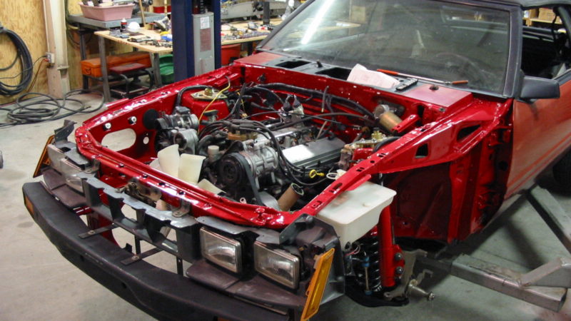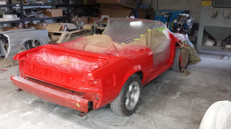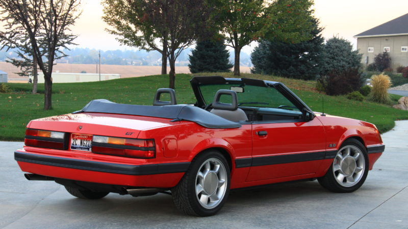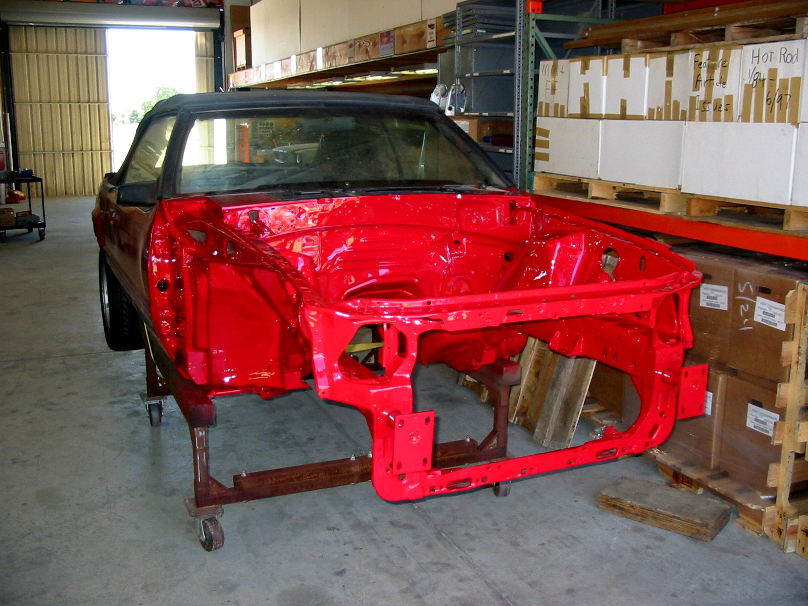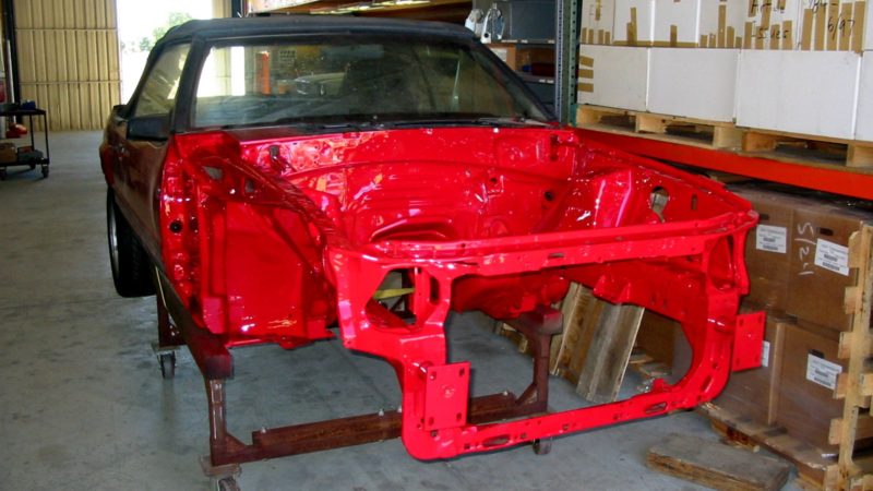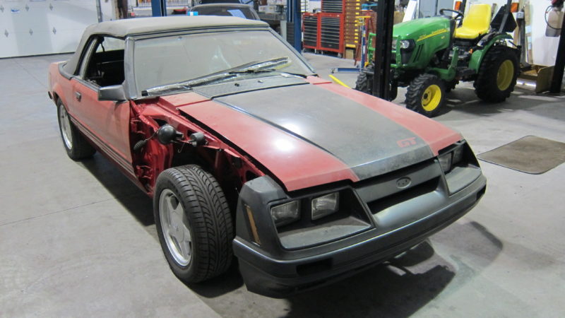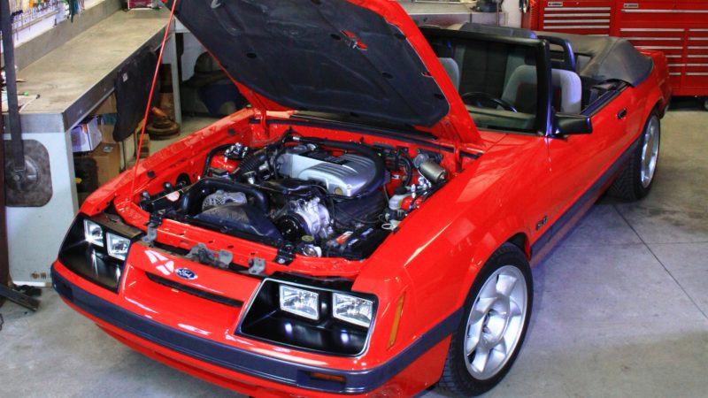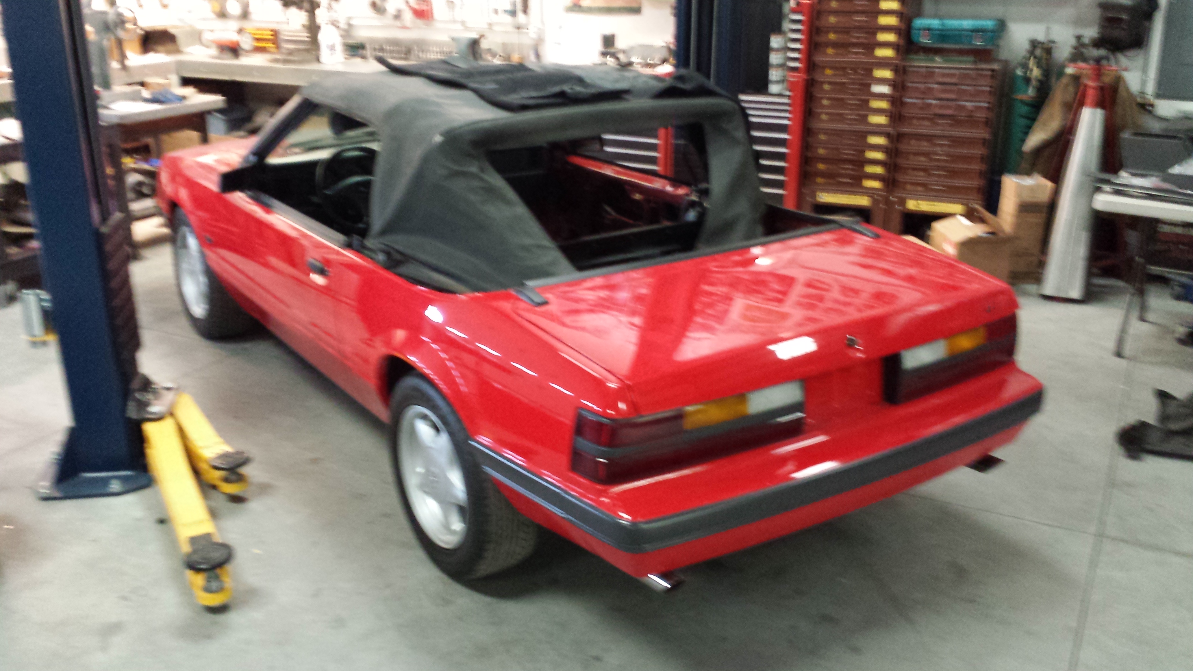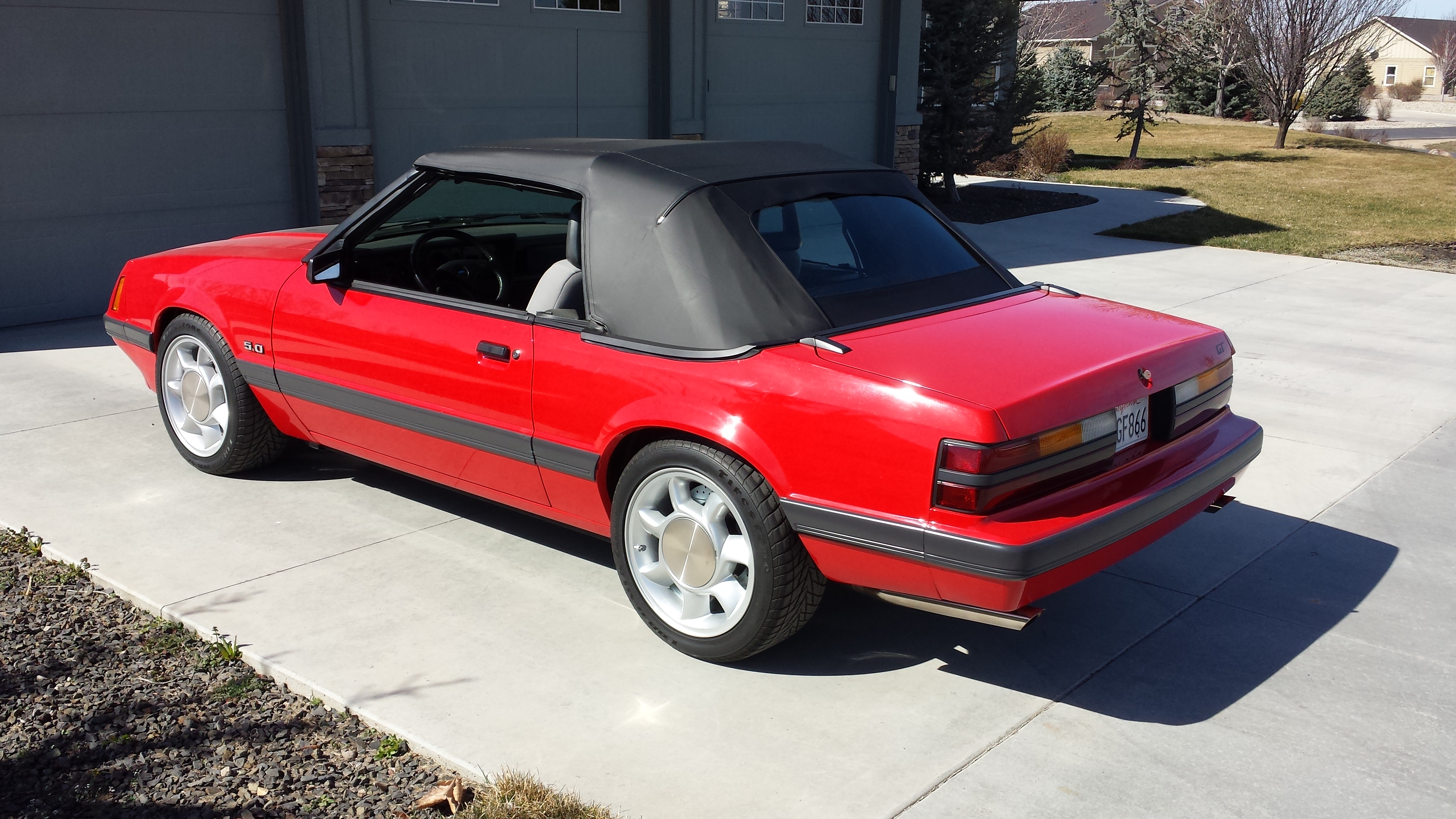 It was finally time to get the body painted. Scott as Car Concept of Nampa, ID was no stranger to classic Mustang but a fox body was a new thing. No sweat, Scott jumped in and saw what needed to be done to make this sleepy Mustang straighter and nicer than I could image. After over 600 hours of body and paint the car turned out perfect. The car returned home were I finished installing a new convertible top with the help of National Part Depot and Fox Resto. The interior was provided by TMI restoring the stock GT seat with new cushions and covers.