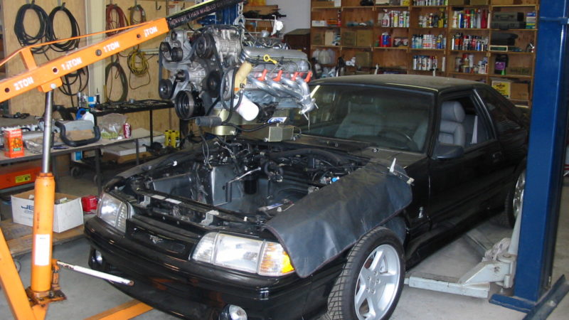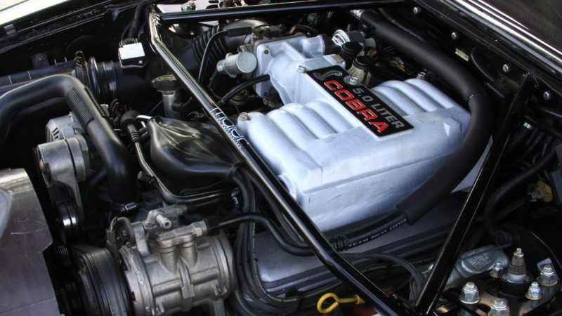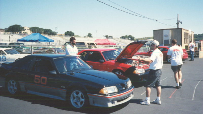 I purchased my 88 Mustang GT two weeks after graduating from Vermont Tech in Burlington Vermont.  The dealership did not have many 5.0L mustangs on the lot but I decided to see what they can to for me.  Bring only 21 at the time, I had to have my mom consign for me.  The car stay mostly stock for years until I moved to San Jose, CA were I met Charlie Bruno of Charlie's Mustang.  Being new the CA, I wanted to join a Mustang club to get to know other of like mind.  Charlie told me about the Norcal Shelby Club where I began opening tracking my Mustang.  Quickly I discovered I needed better brakes and suspension.  From there the mods kept coming.  In about 1999 the Mustang got in a small accident from someone running a red light.  The car then got the cobra treatment and was painted all black.  The motor now is a 331 one stroker with a ARF 185 heads, crane cam, cobra intake with JBA headers.  The brakes are 2004 Cobra brakes and SN95 spindles.  Suspension is a mix if several things with Koni shocks and Ford Performance control arms.