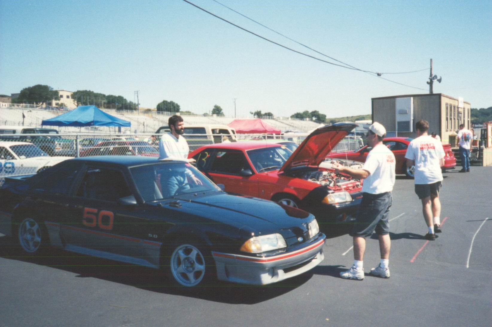 I purchased my 88 Mustang GT two weeks after graduating from Vermont Tech in Burlington Vermont.  The dealership did not have many 5.0L mustangs on the lot but I decided to see what they can to for me.  Bring only 21 at the time, I had to have my mom consign for me.  The car stay mostly stock for years until I moved to San Jose, CA were I met Charlie Bruno of Charlie's Mustang.  Being new the CA, I wanted to join a Mustang club to get to know other of like mind.  Charlie told me about the Norcal Shelby Club where I began opening tracking my Mustang.  Quickly I discovered I needed better brakes and suspension.  From there the mods kept coming.  In about 1999 the Mustang got in a small accident from someone running a red light.  The car then got the cobra treatment and was painted all black.  The motor now is a 331 one stroker with a ARF 185 heads, crane cam, cobra intake with JBA headers.  The brakes are 2004 Cobra brakes and SN95 spindles.  Suspension is a mix if several things with Koni shocks and Ford Performance control arms.