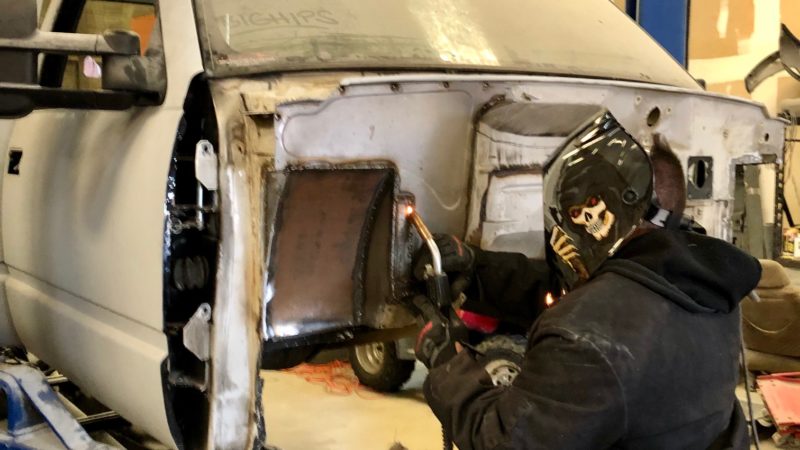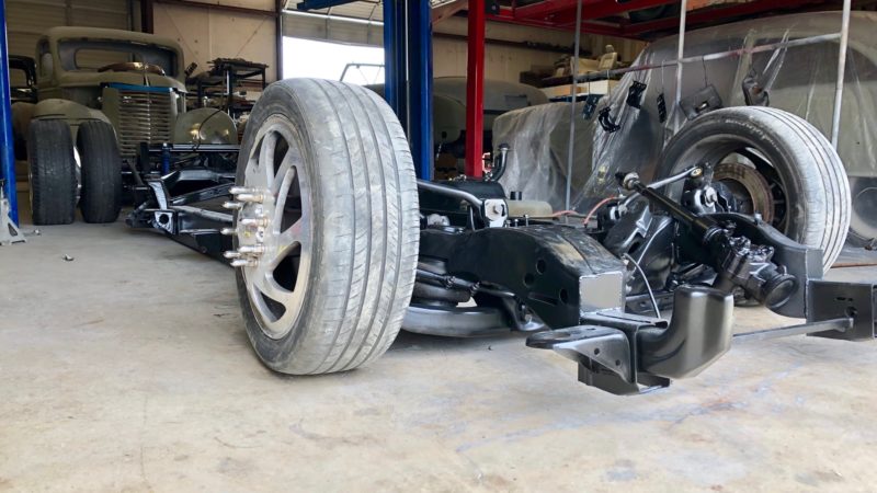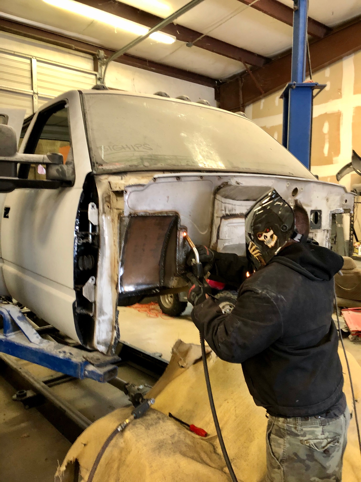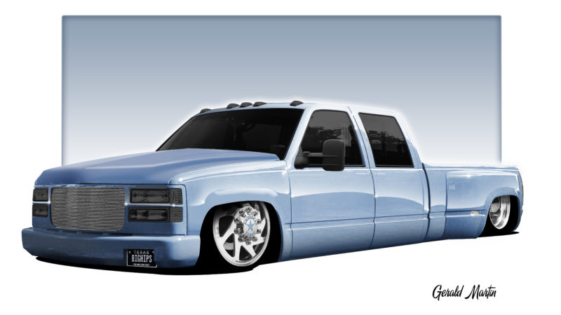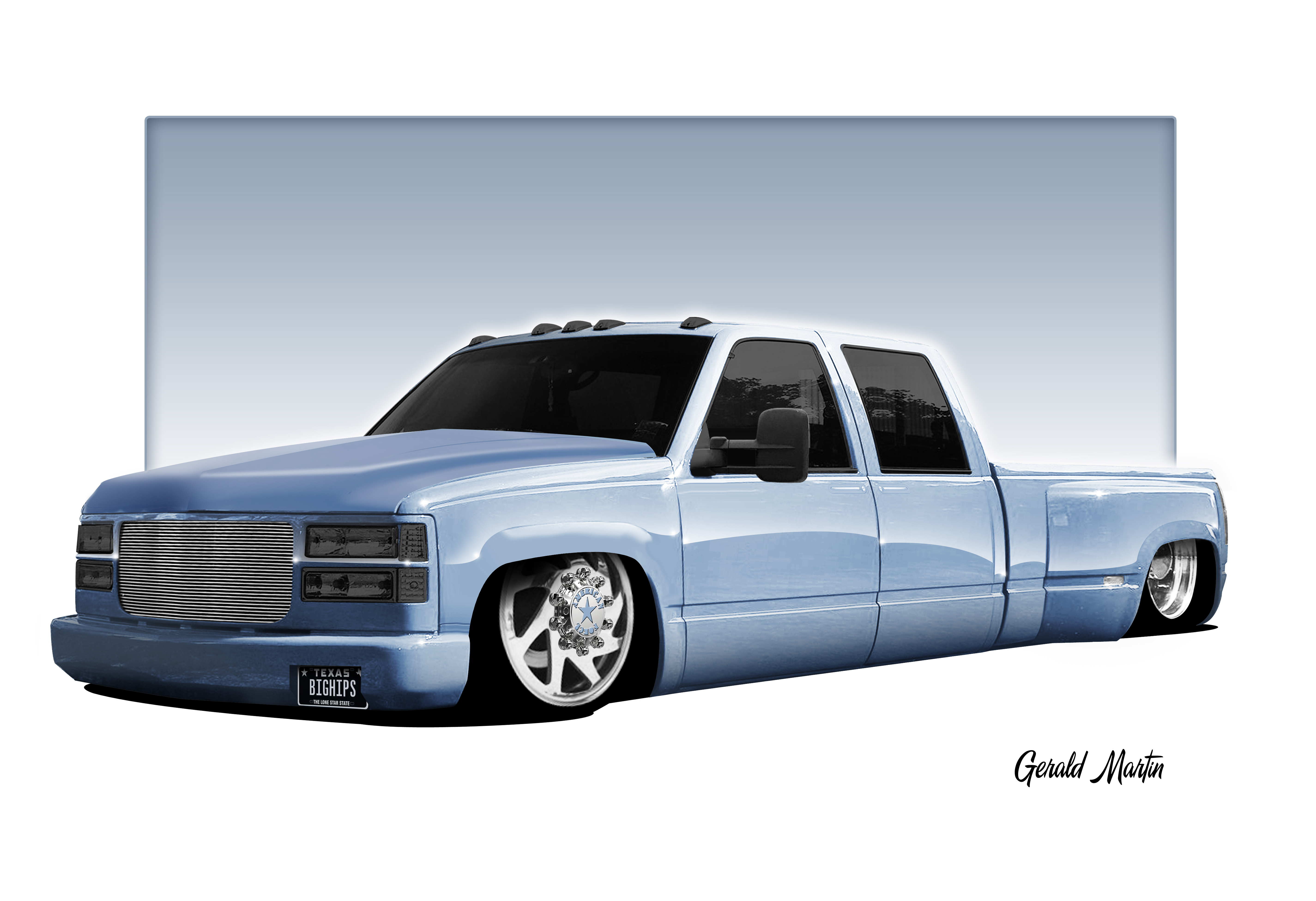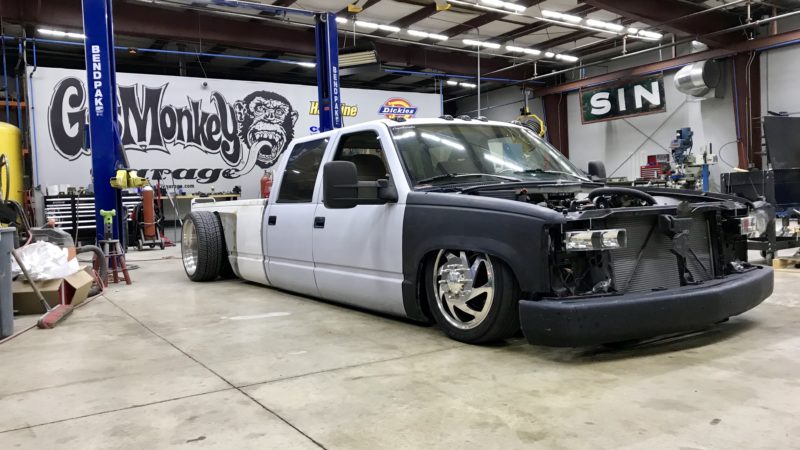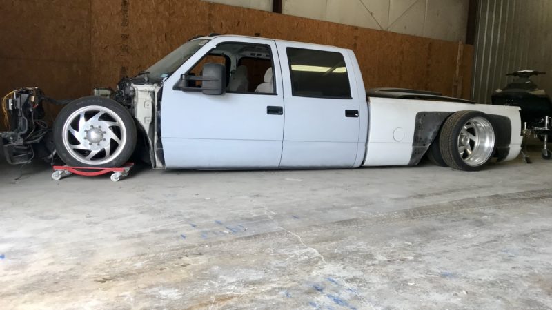 The truck is traditional body dropped and I’m running Slam Specialties SS-8 front bags, 3200lb Firestone bags in the rear, NFamus Watts link, Sean’s Garage 4-link, Accuair Endo tank with E-Level and dual stealth Viair 480 compressors. The engine is a 454 bored .30 over running a Lunati cam and a Holley Terminator EFI kit with custom headers and Magnaflow exhaust. The truck has 22” American Force Wheels as well as Rocky Hinge suicide rear doors and the interior will have a 1962 Chevy truck dash with custom door panels and 4 bucket seats in leather and the plastics will be wrapped and painted as well, we are building a custom center console that will go from the dash to the back of the cab. It will also be running Vintage Air air conditioning