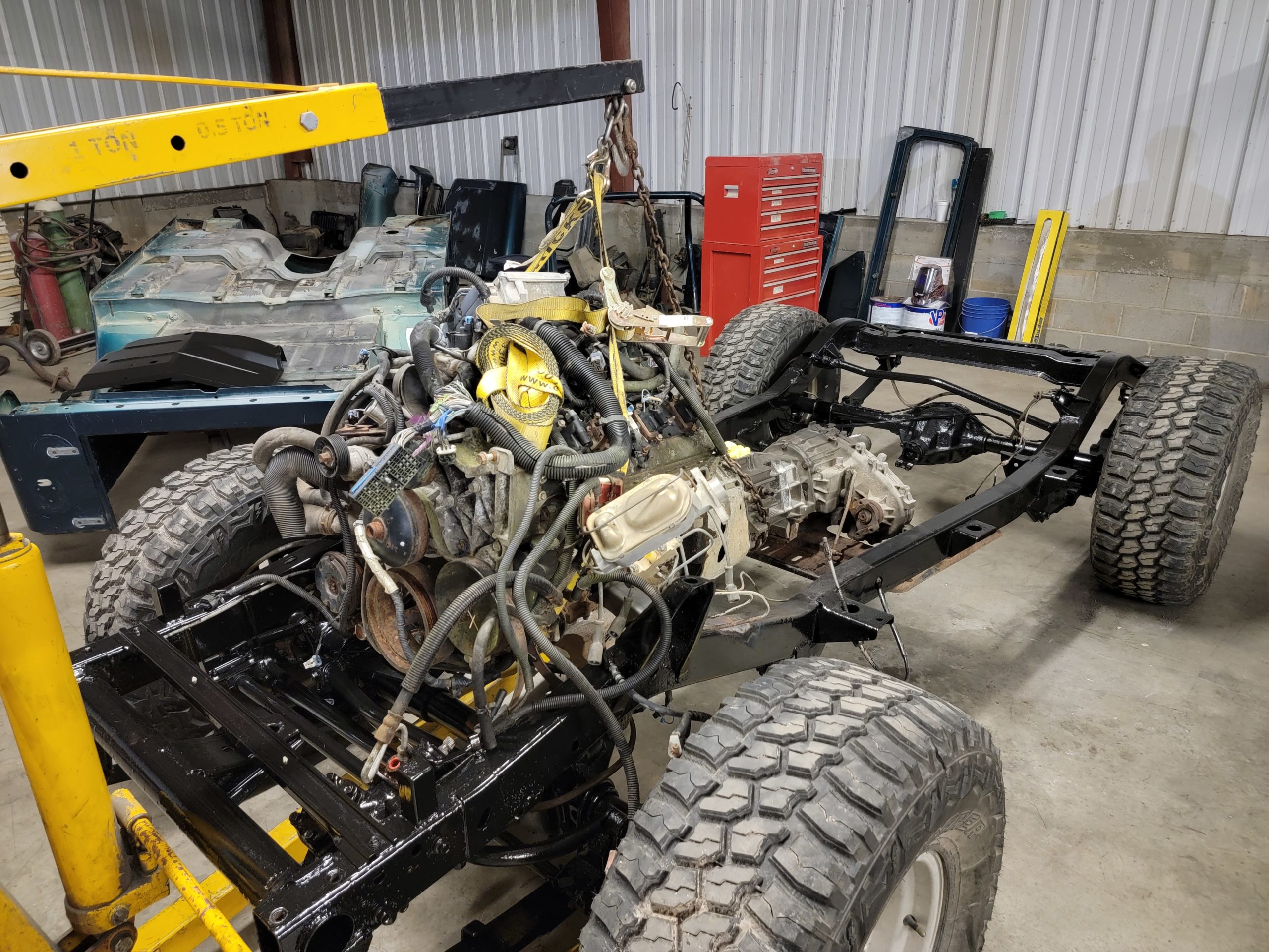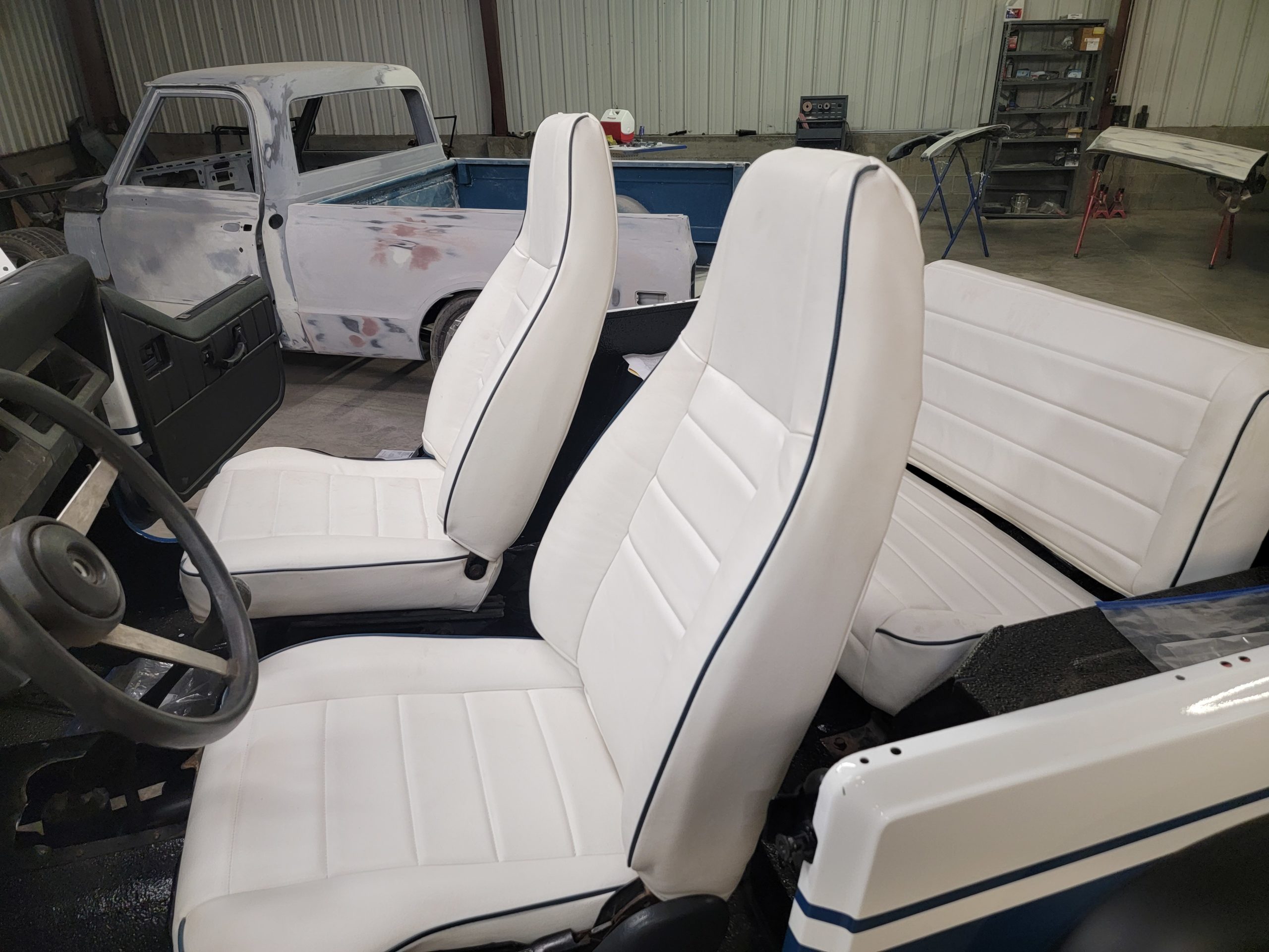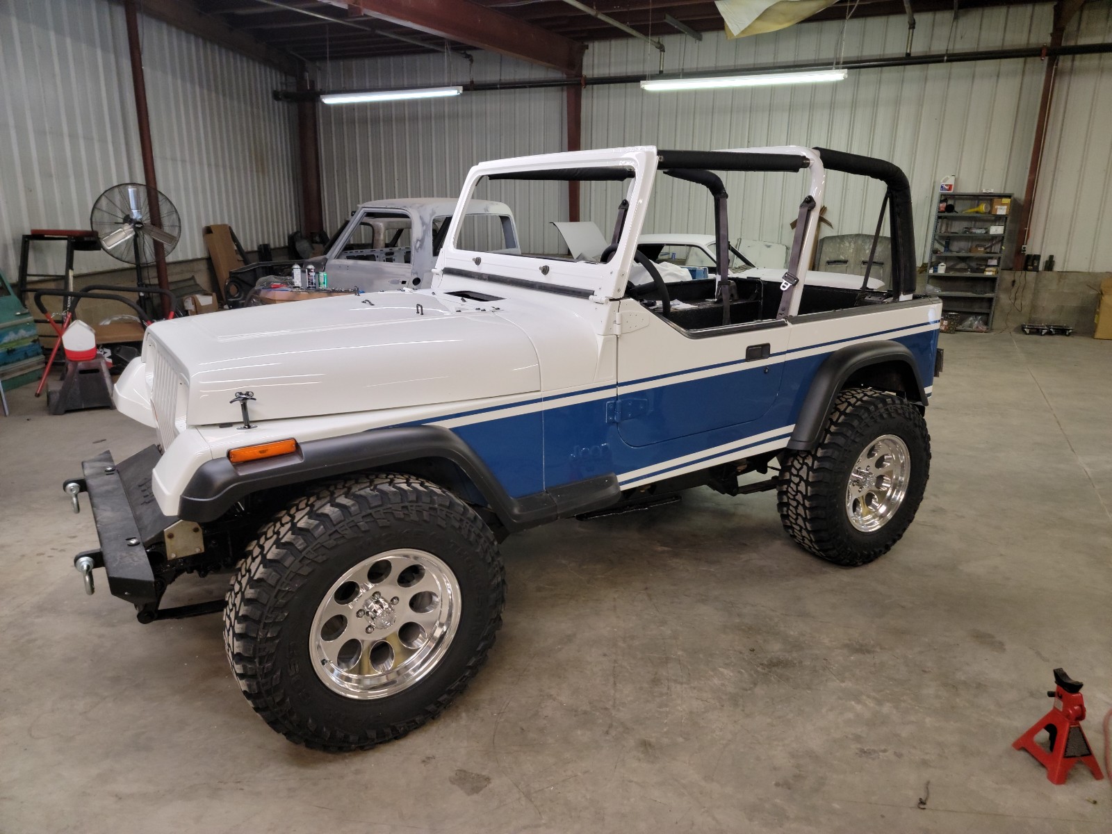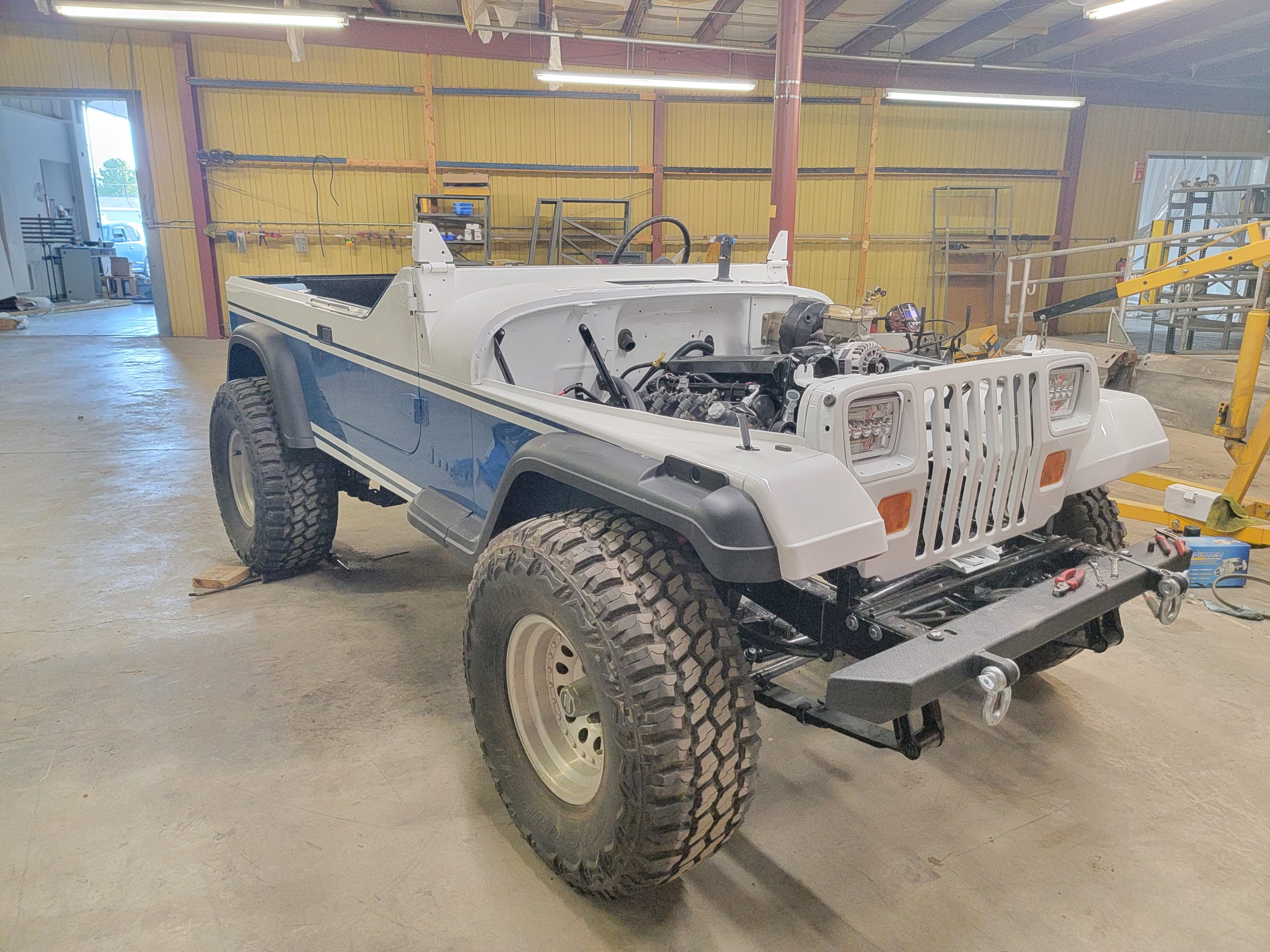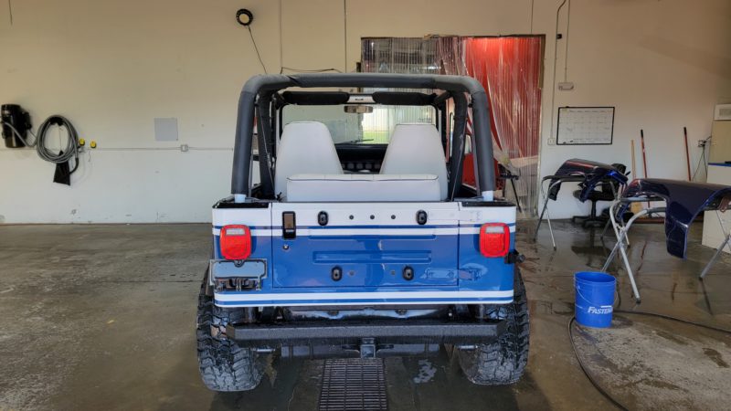 A single family owned Jeep brought to be paint matched to the family boat! With a fully custom interior, drive train, and suspension this little Jeep is ready for anything!
