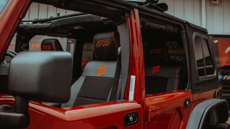 BPAG also found it important to increase overall visibility. To improve Michael Ray’s vision exploring the backcountry, premium Baja Designs LP6 lights and a rock light kit were also added. PRP finished the Jeep off with beautiful custom JK seat covers that feature embroidered Michael Ray logos.