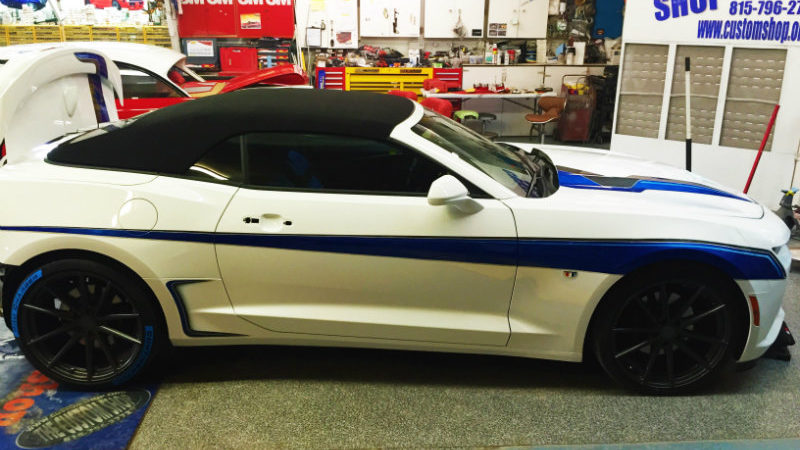 2016 Camaro convert with 500 miles we converted this into a Custom Show car. Custom multi colored graphics will help set it off. Built by the Custom Shop in Flanagan, Illinois.
