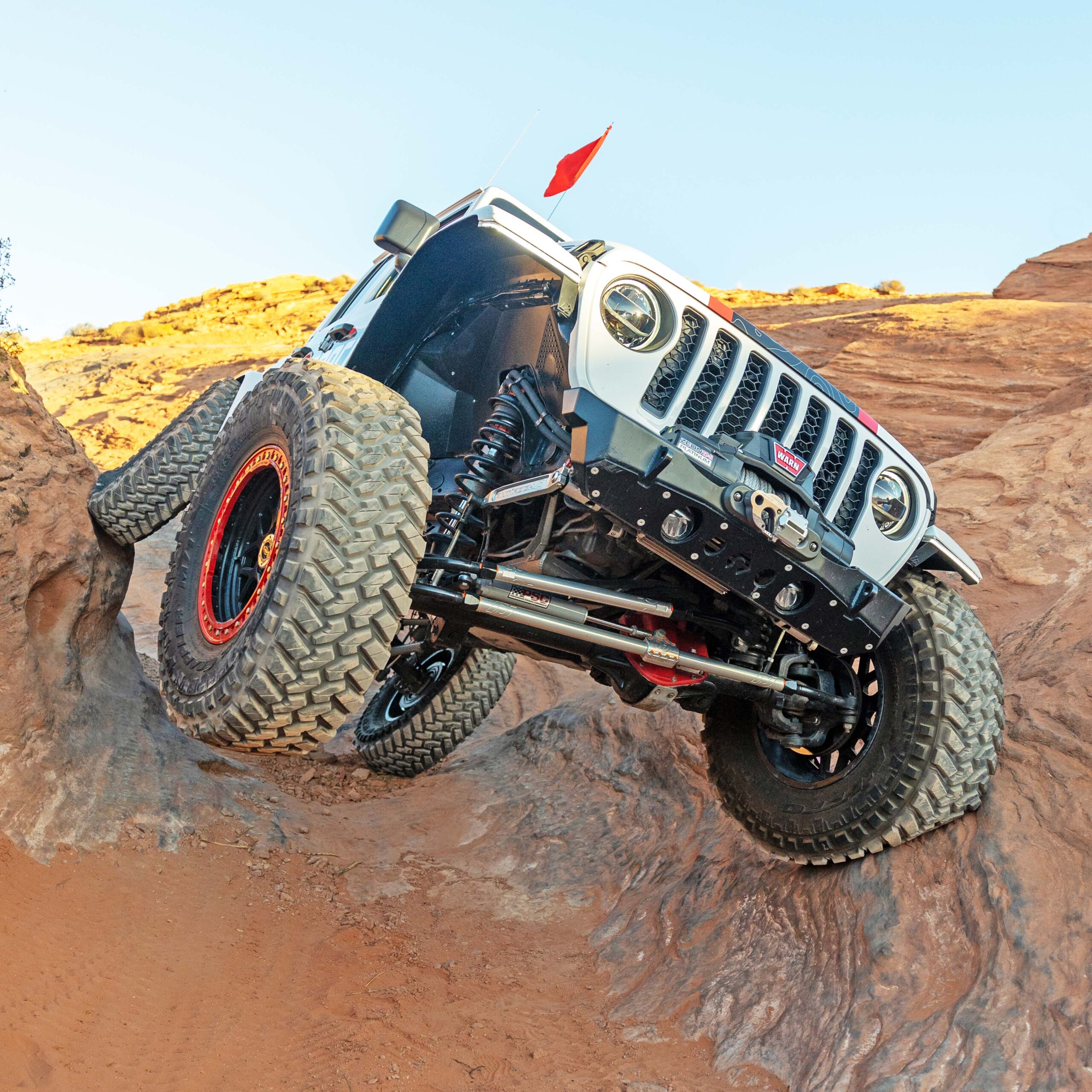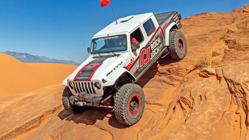 RockJock 4x4's 2020 JT Gladiator Mojave was purchased new in 2020 by John Currie. In stock configuration, it was used to develop all of our RockJock Gladiator components as well as researching and developing components that are specific to the Mojave model.