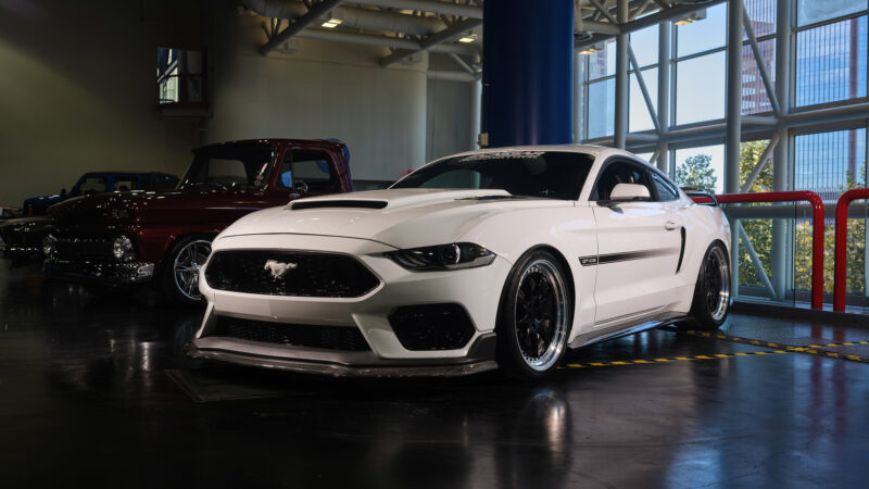 Thousands of SEMA attendees, builders, and enthusiasts stopped in their tracks to see what this machine was all about. Some admired the engineering—the Fortune Auto coilovers, the SPL suspension arms, the Studio RSR chromoly 4-point cage. Others were drawn to the aggressive stance, the first-of-its-kind 2021–2022 Mach 1 front fascia conversion, or the exposed carbon aero from Anderson Composites. But all felt the same thing: this car had soul.