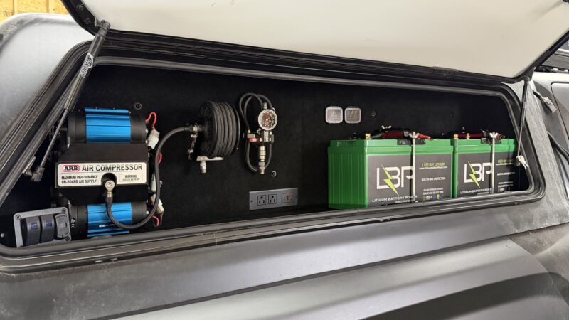 Its upgraded suspension delivers control and comfort whether it’s crawling rocky trails or logging long highway days. The high-capacity roof rack system and innovative bed setup — featuring a topper and sliding storage platform — allow for multiple pack-out configurations. One weekend it may be loaded with recovery gear and camp equipment. The next, it’s stacked with banners, signage, and activation materials.