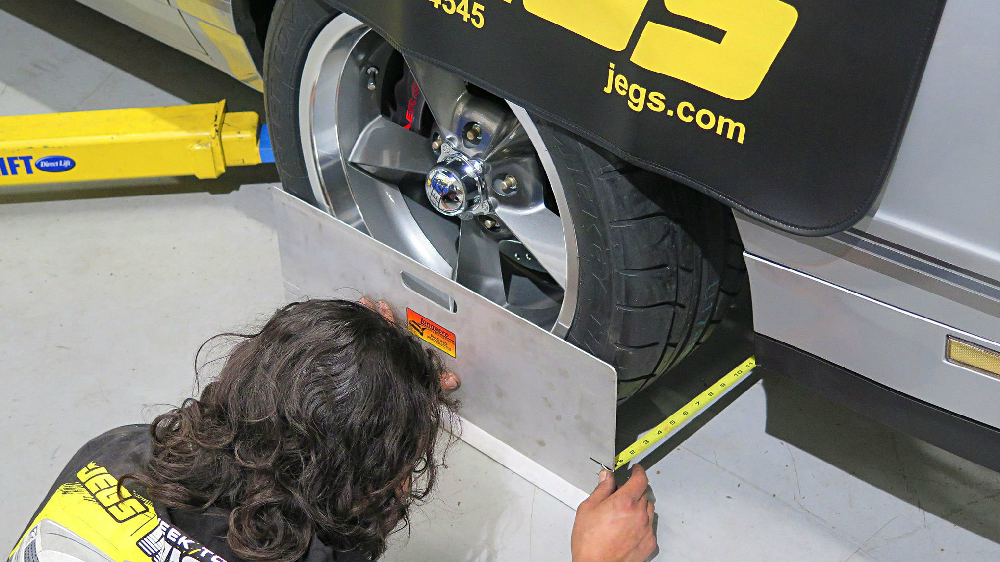 We also had to snug up the suspension and use our toe plates to get some sort of alignment in the car. One of the last things we did was to install a beautiful QA1 carbon fiber drive shaft between the Jegs transmission and the Currie 9-inch. With the Jegs Old School wheels, wrapped in Mickey Thompson rubber, on the car we set the Monte Carlo back on the ground for the first time in 5 days and continued working through small tasks to get it ready for a drive. The work continued until just before midnight when the Jegs SS was ready to venture into the night.