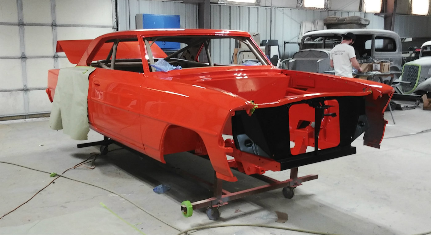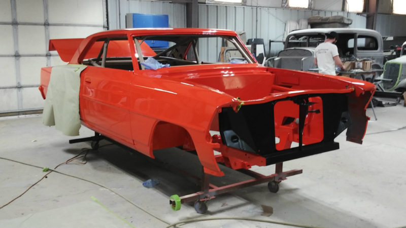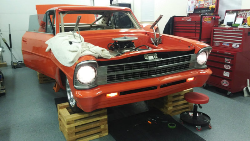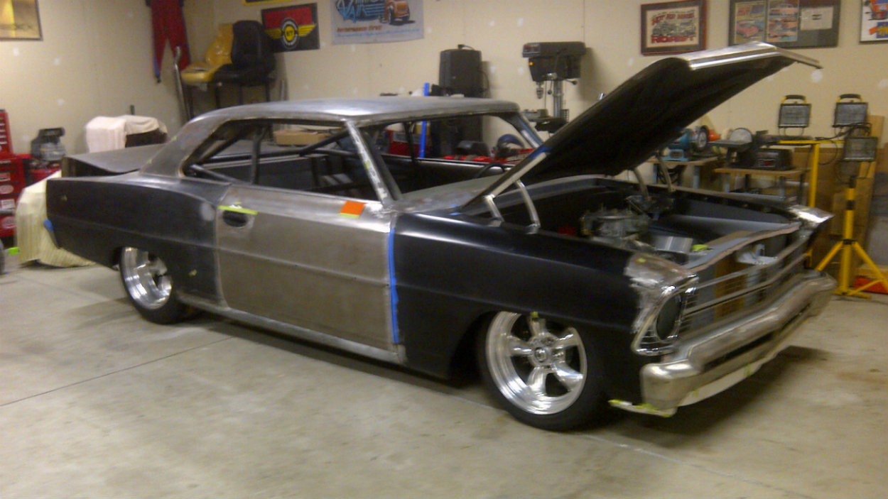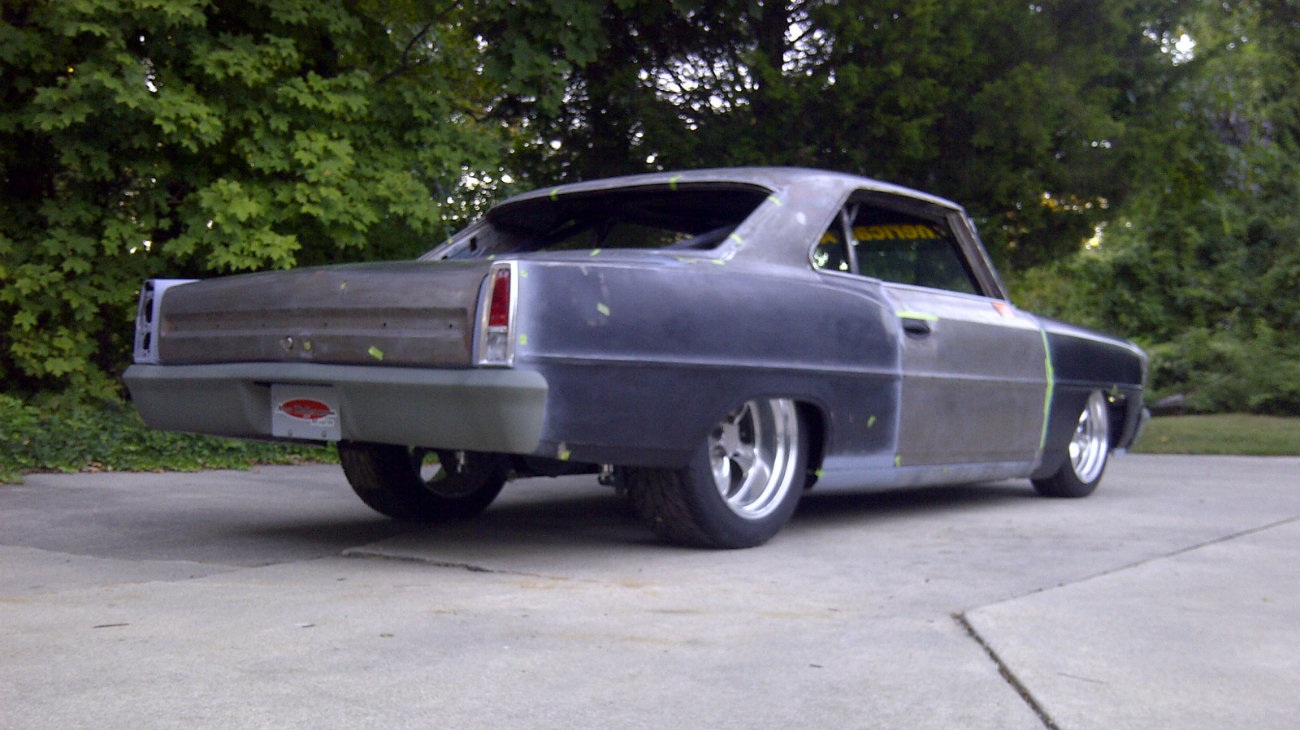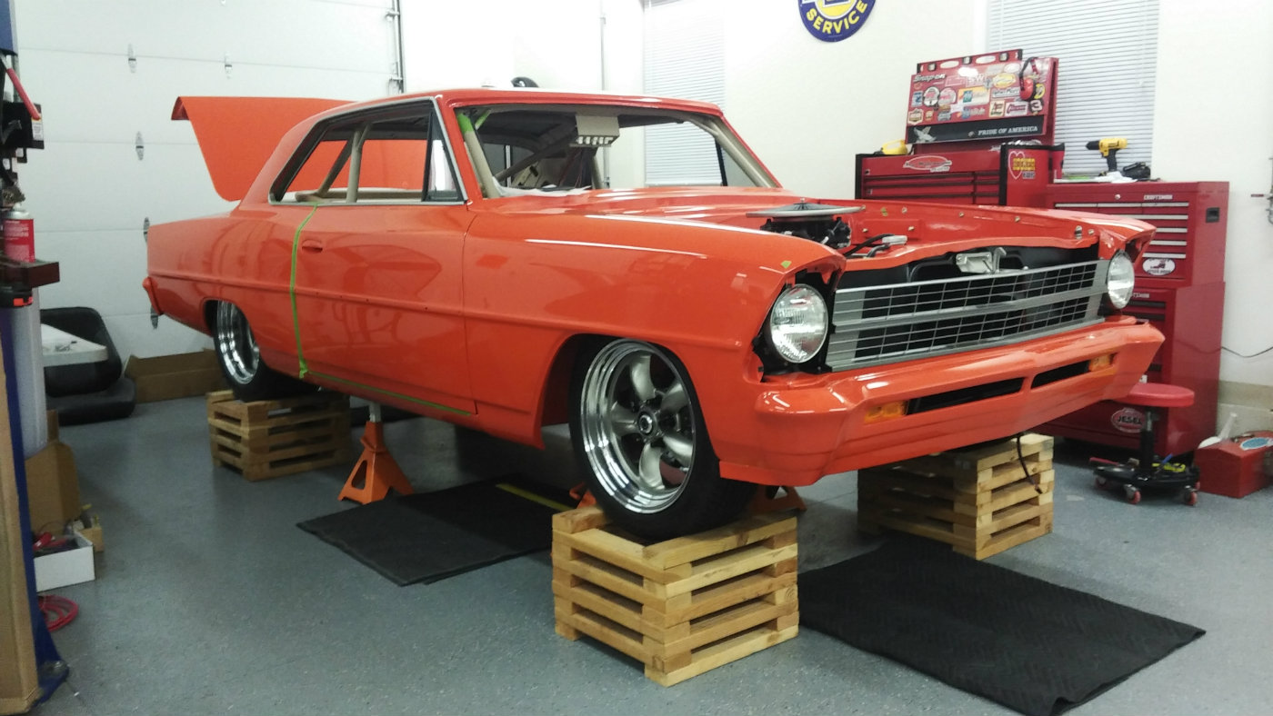 Scott re-enters the Performance Parts Industry, acquires a new residence/shop, Brian still has interest, (building “slammed” duallies) and the project gets back on schedule. Scott’s decision is to go NMCA (National Muscle Car Association) Drag Racing, although, Brian has a different opinion. The new chassis/cage process and drivetrain process begins. Then….. decision time again. Let’s make a “street car” instead of traveling up/down the East Coast racing. But, we have all the racing stuff? Spool, 40’ spline axles, fiberglass parts, etc. No problem. Steel parts are purchased, and race stuff put aside. The only inconvenience will be climbing over the cage to get in/out. Let’s call it “Semi-Pro Street”. Then…. another idea. How about we build the car similar to the 1965 Pro Street Nova Scott had back in the 80’s - 90’s (less the 6-71 blower). Brain and his sister Lauren spent many hours driving around attending car shows with Mom and Dad in that car, and it had some notoriety. Same color, mono-chromatic paint scheme, and most importantly, use brand name parts that would typically have been purchased at your local Speed Shop in the 80’ - 90’s.