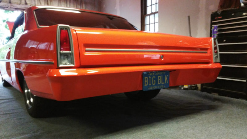 Car was purchased to be Brian Hughes’s first, “High School” daily/driver. (at age 14) Scott, being the local “Speed Shop” owner, figured this type of car (his first car also…), and a mild Hot Rod, would be the most appropriate, and a couple years to complete was fine. A running car was purchased, and the process began. Totally disassembled (Brian and his friends), Fresh 355 small block w/Powerglide trans, new floor boards, fenders and quarters were installed at S/W Performance, Glassboro, NJ and numerous parts purchased. Body/paint was coming up on the schedule, when LIFE changes. After 24 +/- years of marriage and business, one ended, and one was sold. The project was put aside, Brian chose to go the Sport Compact route, and Scott entered a different profession. A few years later ……