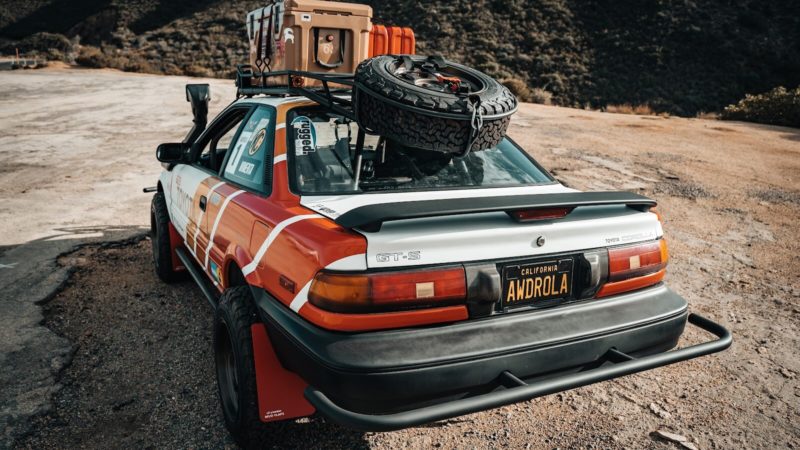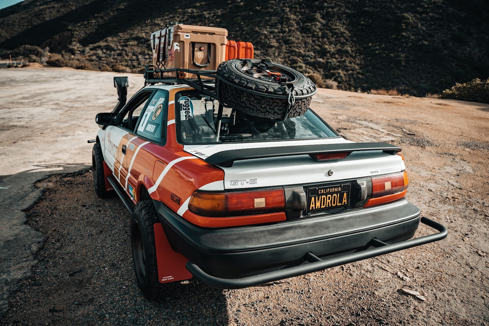 It all started from a simple tag on an Instagram post in 2020 and Randy Wimenta’s daily driver became a one of kind build. Randy is the Marketing Actvation Manager at KC Hilites. While we was driving his communter vehicle, a 1989 Toyota Corolla GT-S, his phone started pinging him about post on Instagram. After he arrived at work, he noticed that post of a Pandemic AE86 Bug Out vehicle was gaining a lot of interest. He showed the rendering to his co-work Alberto and he said “let’s do it.” Alberto then found a 1989 Toyota Corolla All-Trac in Washington and Randy made a call to his cousin Will. After a couple of calls, Alberto, Will and Randy planned out the build.
