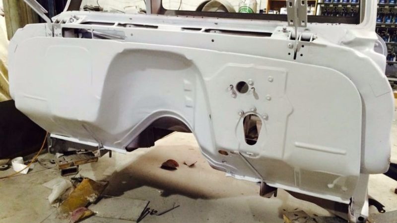 Custom sheetmetal bed with airbrushed wood floor graphics by Joel Cangiolosi
