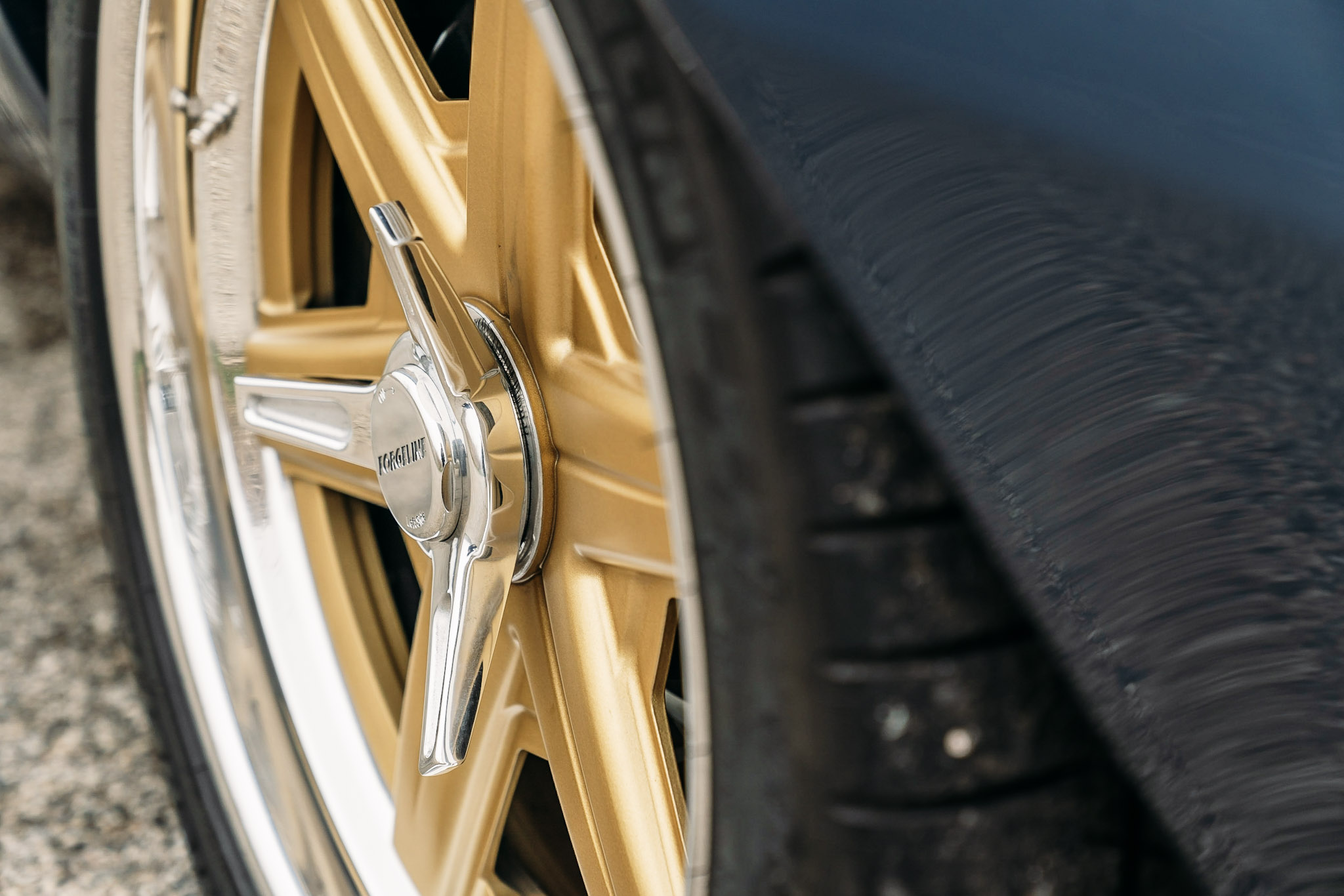 - Forgeline Motorsports - Flush Loc Centerlock Conversion, Heritage Series 19×9/20×12 Forgeline RS6 wheels finished with Race Gold centers & Polished outers