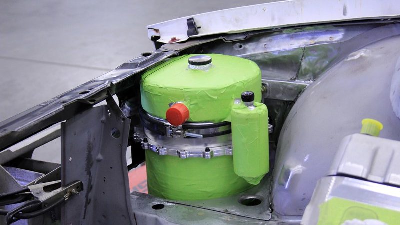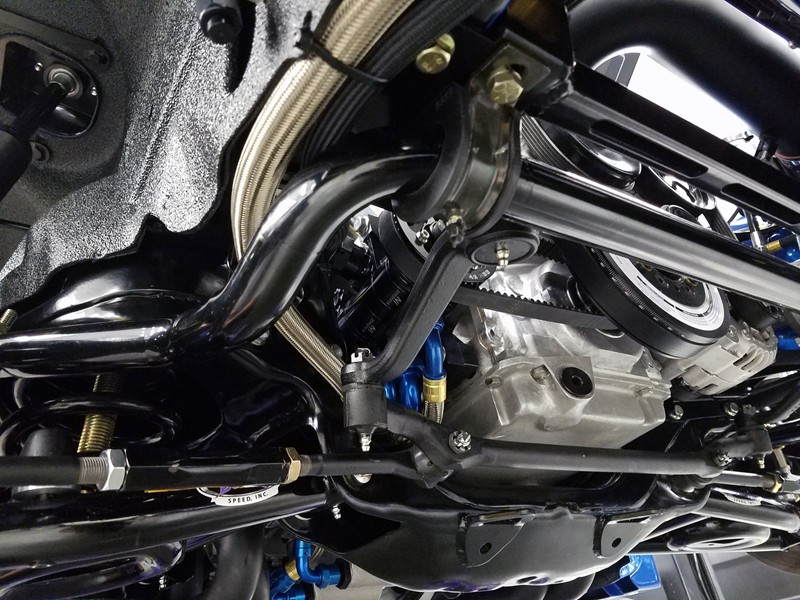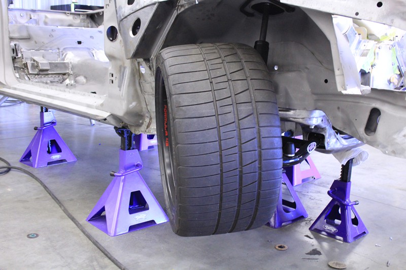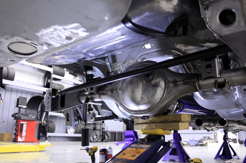 - Detroit Speed, Inc. - Builder; Rear Suspension Four Link Quadralink, Antiroll Bar, Pan Hard Bar, Springs/Airbags, Coilovers. Front Suspension MacPherson Strut, Spindles Factory, Springs/Airbags, Weight Jacking Kit, JRI Shocks Double Adjustable Strut, Antirell Bar with Wonder Bar. Other Suspension Modifications, Caster/Camber Plates and 3pnt Strut Tower Brace, Fuel Tank/Material/Capacity-14 gal., Bodywork, Front Bumper, Install Rollbar, Custom Interior, Door handles, Rear Bumper, Glass, Outside Mirror, Tail Lights, Graphics, Painter, Custom X-pipes on Exhaust System. Bodywork performed by Matt Butts and Painters were Austin Moore and Michael Neighbors of Detroit Speed.