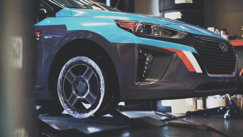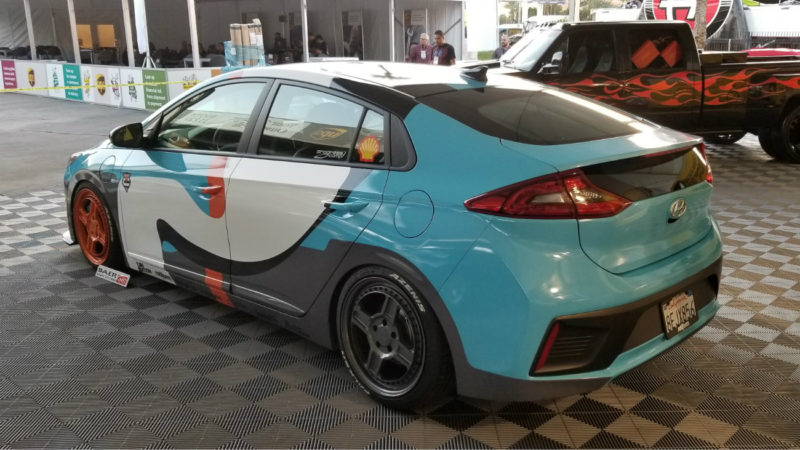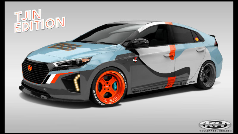 Hyundai Ioniq Hybrid designed by Tjin Edition Tjin Edition and Hyundai have been working together the past few years, as Tjin Edition has built and designed them several cars including the Tjin Edition Hyundai Genesis and Tuscon. But this years Hyundia Ioniq build seems to be their most unique, interesting, and eye catching. The Tjin Edition Hyundai Ioniq sports a custom Avery wrap installed by the team at Daley Visual. The wrap was designed by Neil Tjin’s son, Collin Tjin, and his brother Gene Tjin. They wanted something that would grab people’s attention in the Shell x Pennzoil booth at SEMA, on the Tjin Edition Roadshow in 2019, and while cruising on the 405 in SoCal. The custom colors, #55, and design were all part of Collin and Gene’s grand vision for the exterior. Finishing off the exterior are custom 18” 3-piece Rotiform RBQ wheels (orange for the fronts and gunmetal for the rears), matched up to 225/40/18 Falken Azenis RT615k tires. Sitting tucked nicely behind the custom Rotiform wheels are custom Baer big brakes (6p baby blue calipers and cross-drilled and slotted rotors). The suspension has been upgraded with a custom set of Progress fully adjustable coilovers and rear sway bar. The interior of the Ioniq features custom black and orange Katzkin leather.