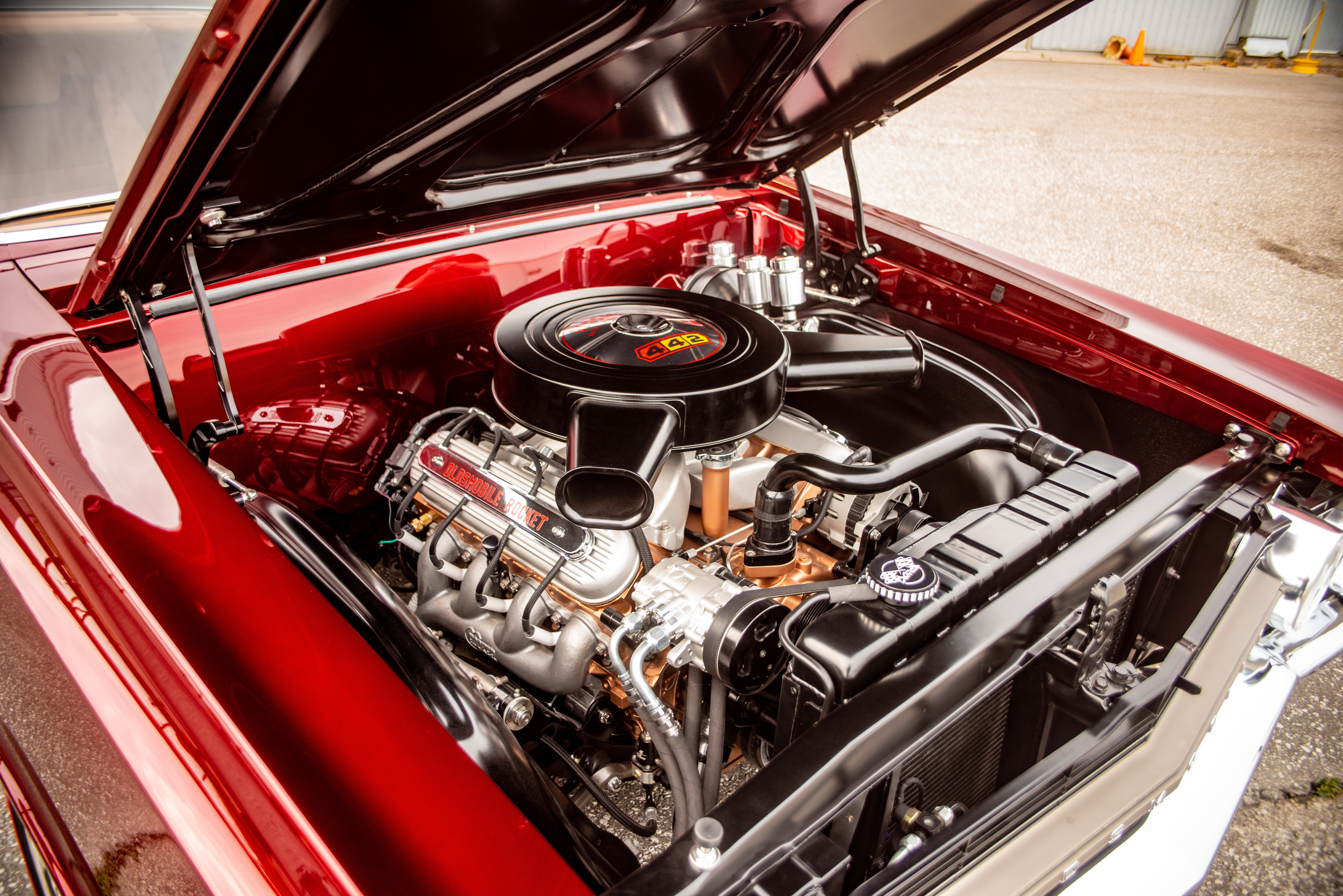 A more rigid, braced and welded, 1965 GM A-Body convertible frame was opted for in this build, which is hung on Detroit Speed and Engineering Coil over suspension in both the front and rear. The Oldsmobile will stop using 13” Wilwood brakes at the front and 13” on the back. Fueling for the car will come in the form of a Tanks Inc. fuel tank with an in tank pump connected to the throttle body with Inline Tube stainless steel fuel lines and Redhorse Performance fuel hose and fittings. The fuel tank is vented through a II Much VSB Vent.