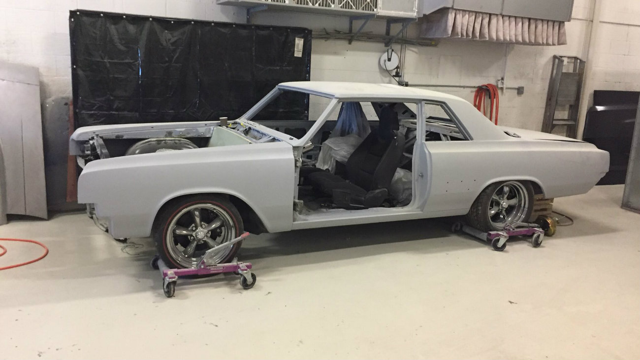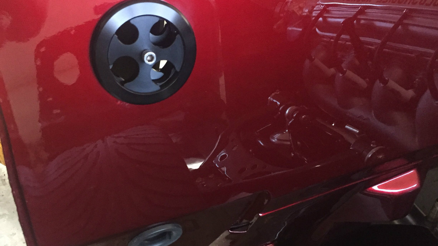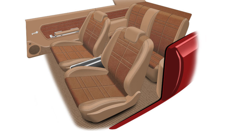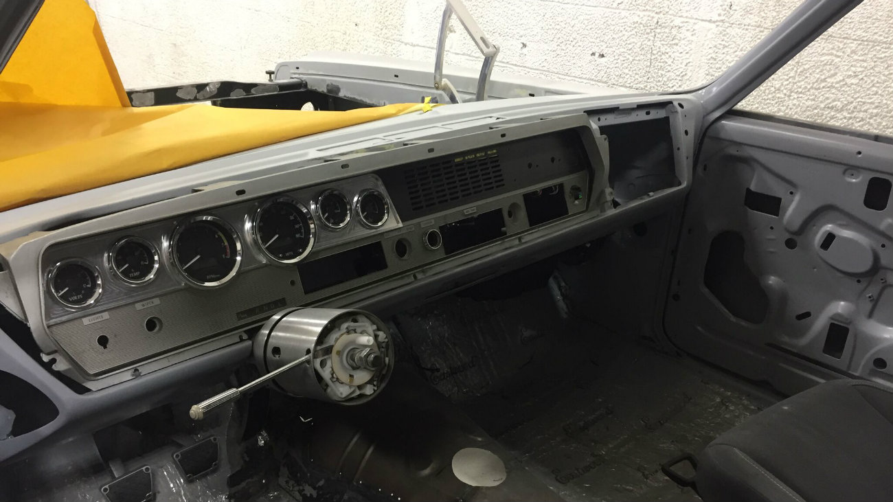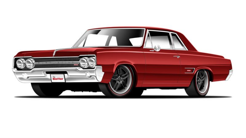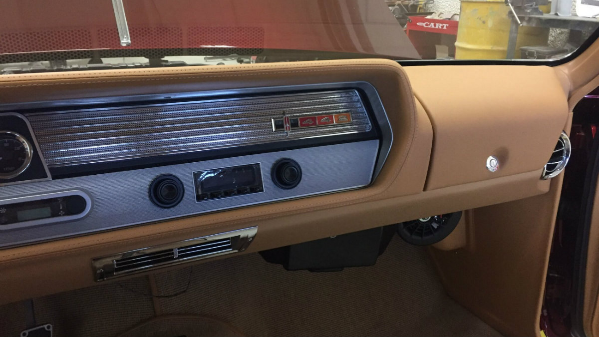 Inside the Cutlass we are updating the look and feel with a set of modern Camaro buckets trimmed in leather and Alcantara from Relicate Leather. We have also worked with Dakota Digital, to build us a custom set of gauges and provid us with one of their Vintage Air Climate control units. To go along with these trick parts we have had a custom aluminum gauge bezel machined. JH is also working with Synergeering (Rapid Nylon) who have rapid prototyping or 3D printed us a lower dash bezel and an original Style Olds 442 air cleaner. The Getter will keep its interior cool with the help of a ‘65 Chevelle Vintage Air Gen IV Sure Fit system, modified to work with the Oldsmobile factory A/C Vents. The under the dash area also houses Clayton Machine Works muscle car pedals, Lokar accelerator cable and E-Brake cables, as well as The American Autowire ‘65 GTO classic update harness with a Phantom Products/Bowler Push start system.