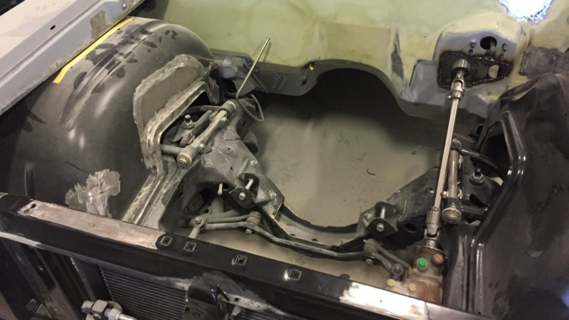 Our goal is to complete the building of the ’65 Cutlass using the best products available, from many of JH Restorations great partners. This car has had a transplanted 6.0L LS engine, which will be modified and detailed to resemble a factory 65 Oldsmobile 400 engine. Some of the elements we are using to accomplish this are a Wegner Automotive accessory drive system, which changes the look of the standard LS drive kits available. This kit reverses the coolant flow and relocates the thermostat to give it a more period look. An Edelbrock intake tops the 6.0L with a FAST 2.0 throttle body, being controlled by their EZ-LS controller. All fuel injection wiring that is visible under the hood will be dressed with non-split braided loom from Wire Care. The engine breaths with the aid of a Comp Cam “Bumpstick” and Hooker cast manifolds. The LS will also be outfitted with PML Vintage style finned valve covers and custom spark plug separators with a coil relocation kit . Taking care of the cooling on this LS engine is a custom built Dewitts Radiator with a soft start variable speed Spal electric fan. The gear changes are handled by the Bowler Performance built TKO 600 5 Speed Transmission.