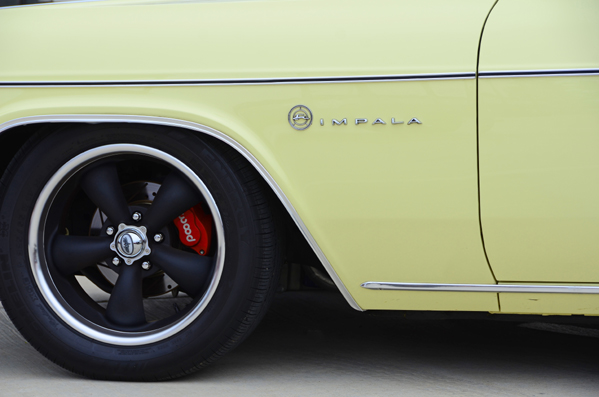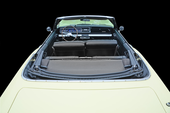 Big bundle of joy it wasn’t; long story short, Ken redid the ENTIRE car in 10-months, replacing darn near everything. The body of the barge was thoroughly massaged back to stock and fogged with Lemonwood Yellow. If it looks like Butternut to you, you’re right! The General called the color Lemonwood for 1966, and Butternut thereafter. There’s some trivia for your next cruise night! New fenders, bumpers and convertible-top parts got the B-Body looking right, and Ride Tech coilovers put it where it needed to be in the handling category, as well as allowing the wheelwells to give the 17 and 18-inch Coys wheels a hug. Wilwood power discs make sure everyone arrives in one piece, while a 2006 LS2 ensures quick getaways. A 4L65E is connected to a classic 12 bolt filled with 3.55 gears and a posi.