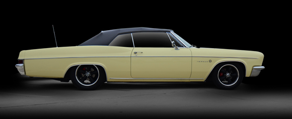 Ken and Paulette Tibor like to put the miles on. Avid fans of the Hot Rod Power Tour, they made the trek in a ’37 Ford a few times and had a ball. And leg cramps. Looking for more space in the cabin, the following Tour was covered in a survivor ’66 Nova which offered slightly more leg room. The Nova served as the cross-country traveler for a few years, but Ken grew weary of the lack of trunk space and overdrive. Like the street rod before it, the Chevy II was pushed to the back of the garage and the hunt was on for a cherry Chevy with a big trunk that Ken could swing an LS into (to pull the trunk) along with a fresh suspension for comfort and stance points. Wisely looking outside the rust-belt, (Ken resides in salty Wisconsin) a “never been wet survivor” ’66 Impala drop top was located out East. The pictures were promising and the seller sincere, so the money was sent and a transport company delivered the big bundle of joy.