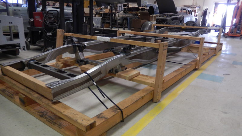 The Engine came straight from GM, it is a 495 hp LS3 crate engine and 4L70E Transmission package. It runs awesome, break the tires loose with no problem. The stock exhaust manifolds were replaced with a set of Hooker cast iron manifolds and of course color coated black to match other accent colors on the engine and wheels. The rest of the Exhaust system was hand fabricated for Stainless tubing. Matt Reed our sheet metal instructor is awesome with stainless exhaust tubing. The TCI chassis doesn’t give a lot of room for exhaust plus Mark wanted to make a little noise with the install of electric cut outs. Matt got everything tucked in the chassis without a rattle. The mufflers we used was Borla, very nice sound, Mark said he wanted to here the engine, but now he says we might have to tone it down a little. We all like the sound, especially with the hot cam the 495 hp LS3 puts out.