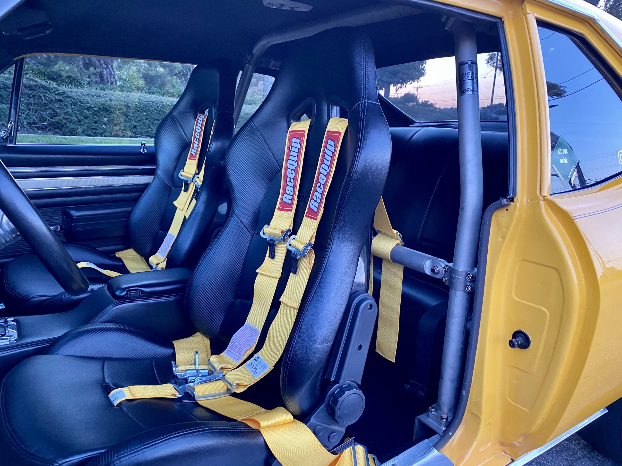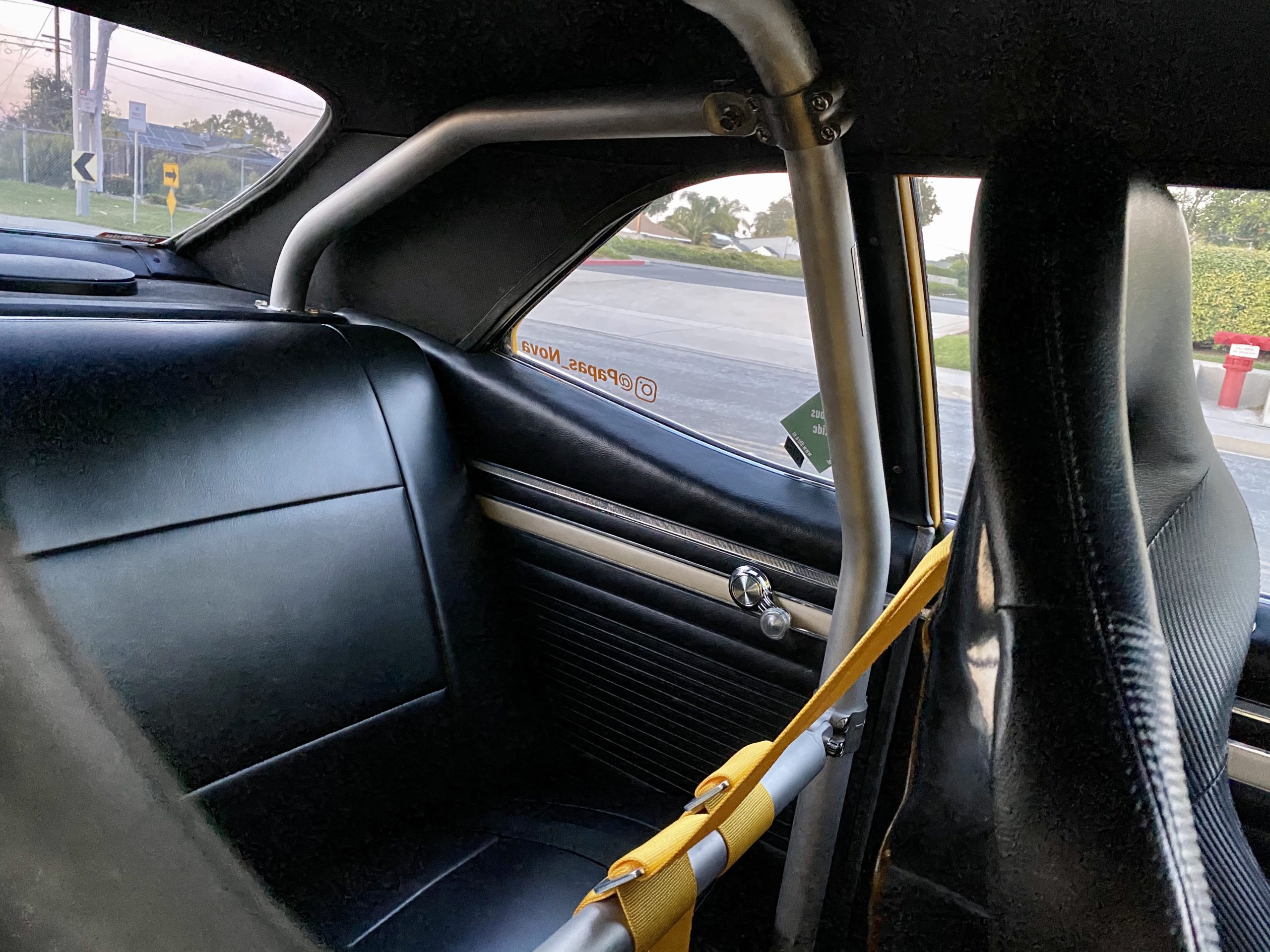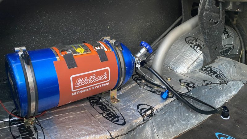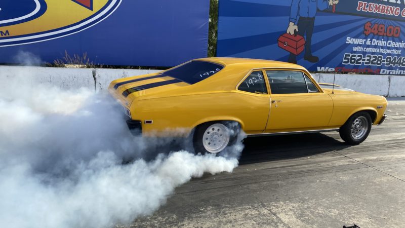 Fast forward to now — Dennis’ granddaughter Lydia attended Frank Hawley Drag Racing School where she received her NHRA Competition Drivers License. A call was placed to Martin and he agreed to sell the Nova back to the family and it is back in the U.S. For added safety we installed a Ridetech TigerCage, Procar by Scat Sportsman Pro seats and RaceQuip 5-point harnesses. Additionally, we relocated the NOS bottle from inside the car to the trunk. Nitrous Supply re-certified and filled the bottle. Chris Beanes of Beanes Family Motorsports added a driveshaft safety loop. Lydia is doing test & tunes at local race tracks and hitting the local car cruises.