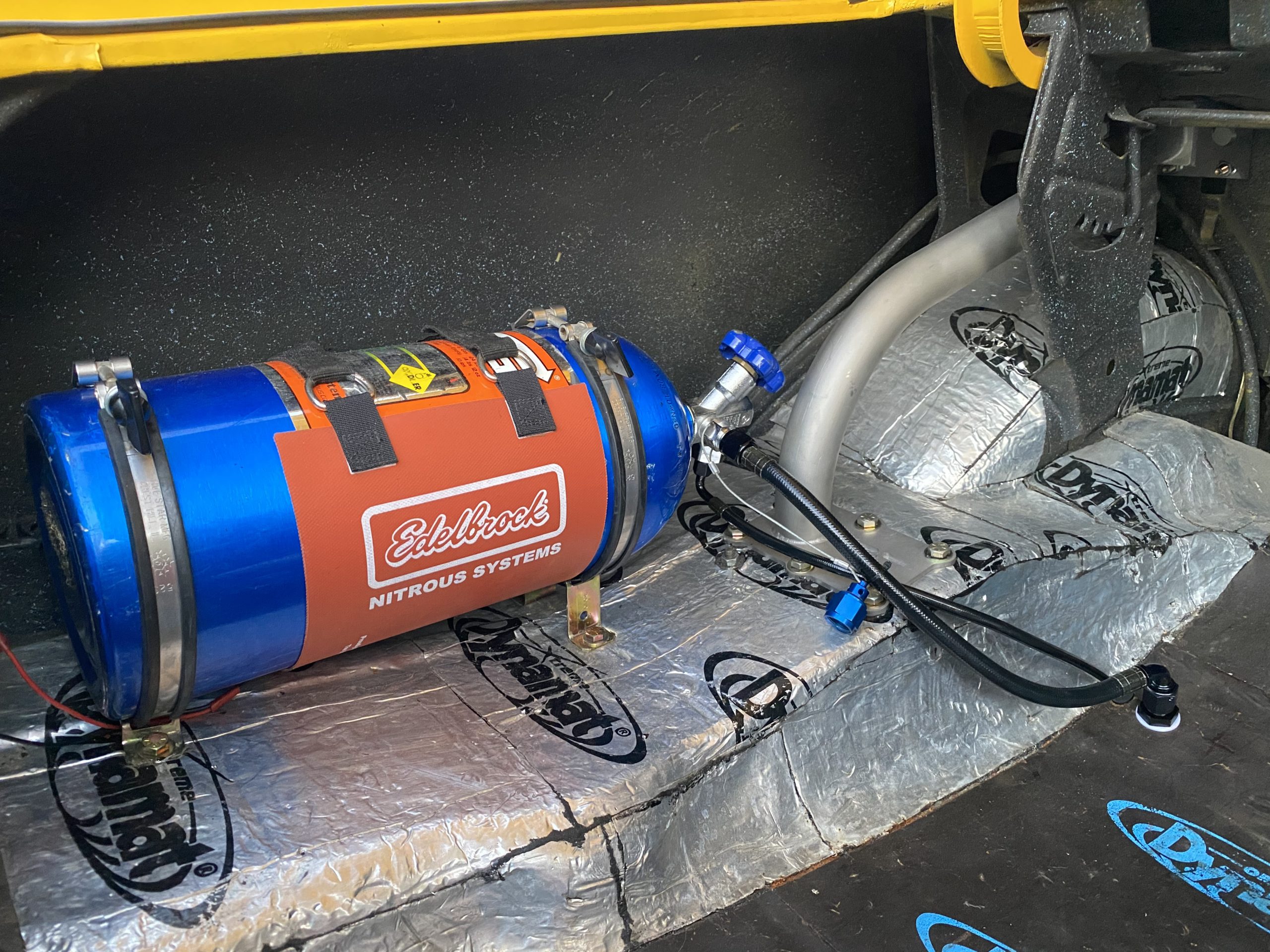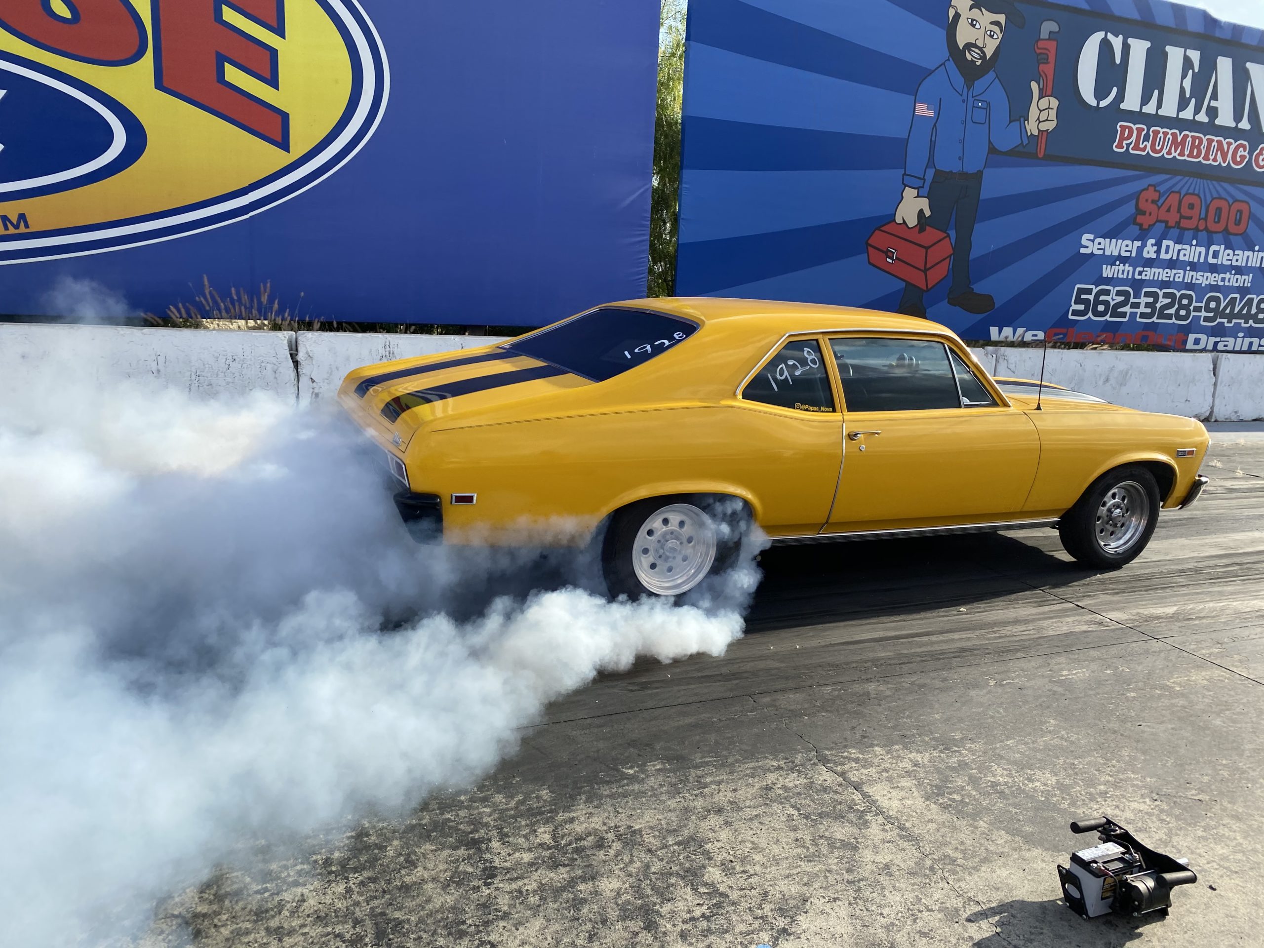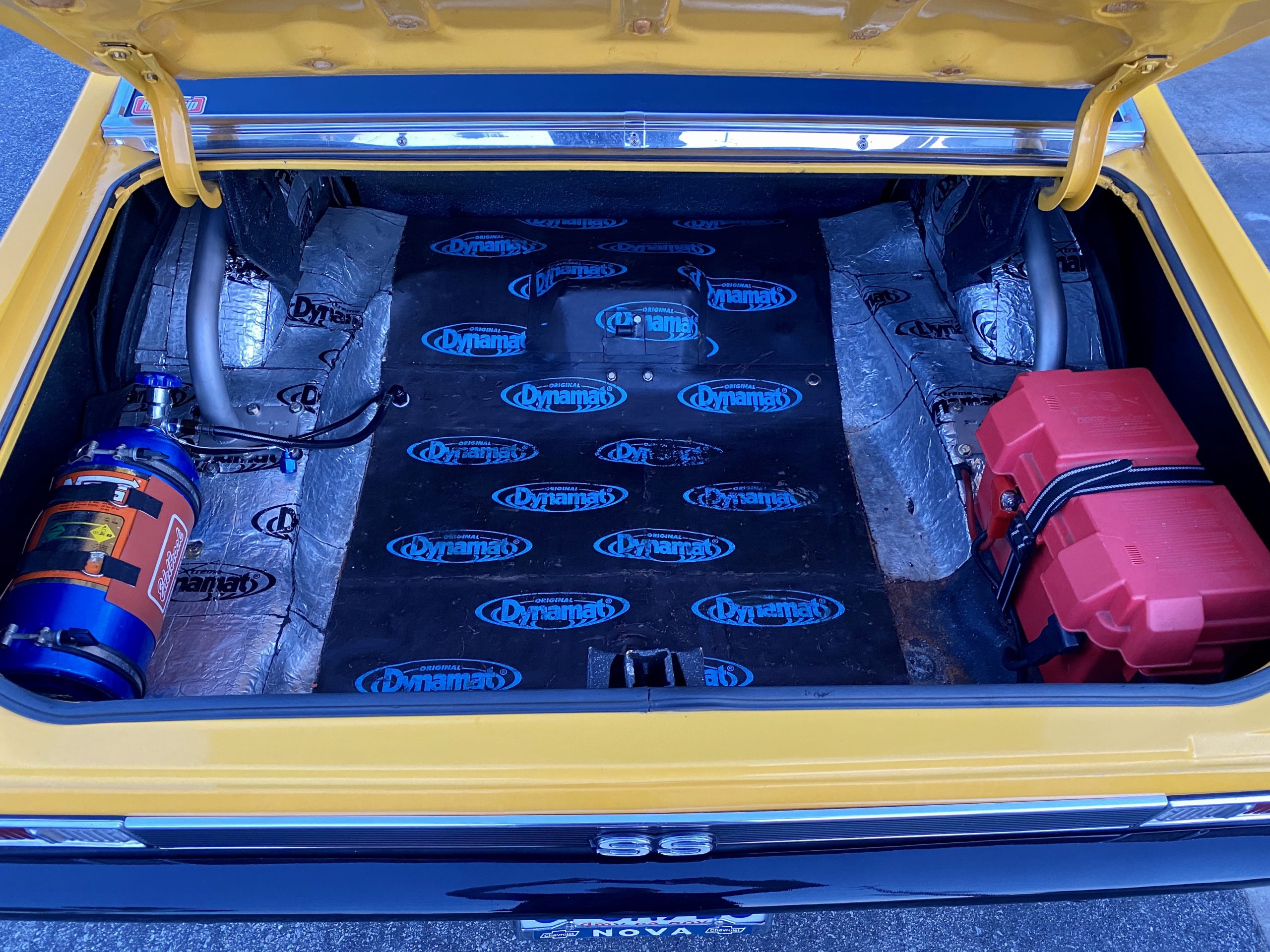 Fast forward to now — Dennis’ granddaughter Lydia attended Frank Hawley Drag Racing School where she received her NHRA Competition Drivers License. A call was placed to Martin and he agreed to sell the Nova back to the family and it is back in the U.S. For added safety we installed a Ridetech TigerCage, Procar by Scat Sportsman Pro seats and RaceQuip 5-point harnesses. Additionally, we relocated the NOS bottle from inside the car to the trunk. Nitrous Supply re-certified and filled the bottle. Chris Beanes of Beanes Family Motorsports added a driveshaft safety loop. Lydia is doing test & tunes at local race tracks and hitting the local car cruises.