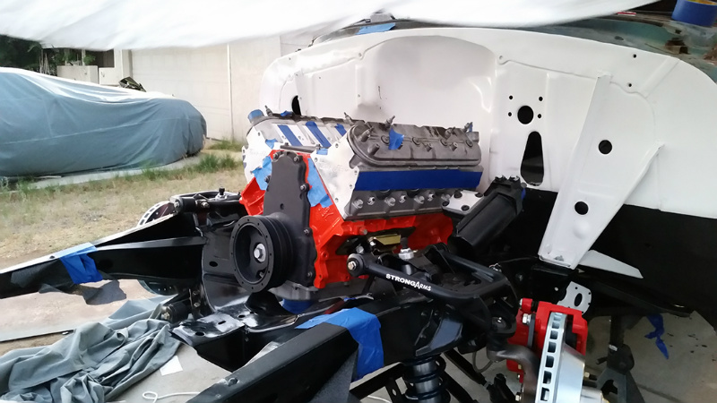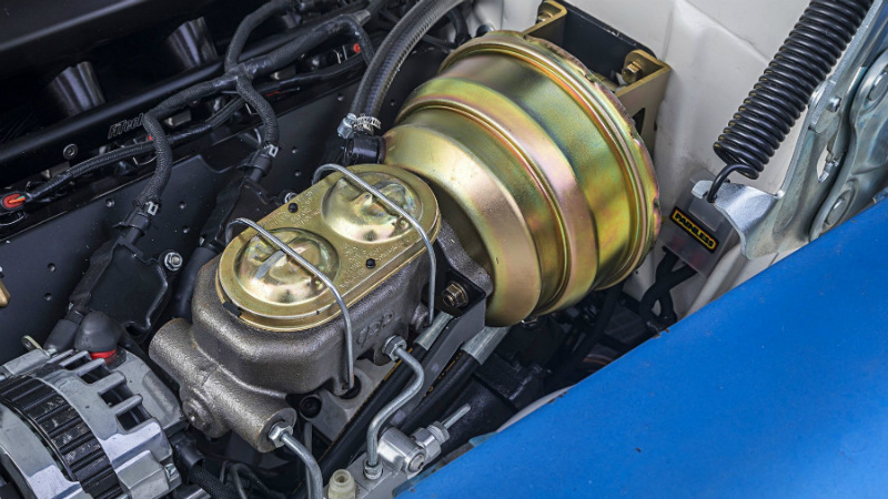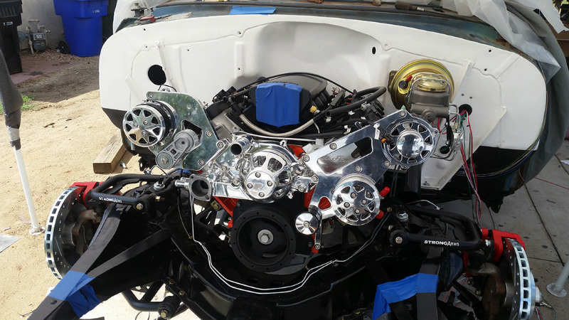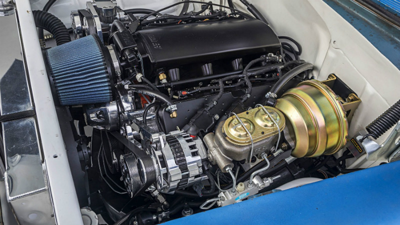 Since the car was purchased with no engine between the frame rails, I selected a 5.3-liter LS power plant from an ’04 Silverado pickup, then Gabe Bell of R&G Customs topped the engine with a pair of Trick Flow GenX cylinder heads, a Trick Flow camshaft, and a FiTech Ultimate LS EFI system complete with fabricated intake manifold. Feeding the engine is a 255-lph fuel pump installed in the Tanks Inc., fuel tank. Performance Distributors LS coils and wires set the fuel aflame while Doug Thorley LS Tri-Five ceramic-coated headers get the exhaust moving into the Flowmaster Series 10 mufflers. Engine dress-up comes in the form of an All-American Billet LSX serpentine drive kit and CRF Performance valve covers. Liquid cooling is handled by a B&M Racing engine oil cooler along with a Champion’s four-core aluminum radiator and Tuff Stuff water pump for the engine coolant.
