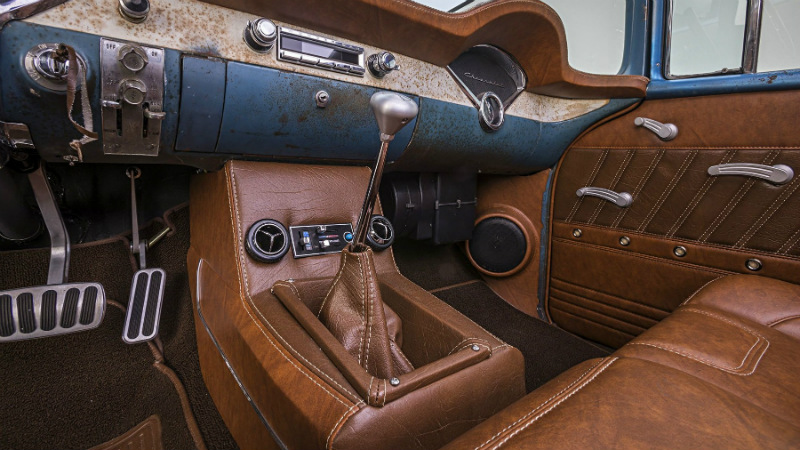 After cleaning everything up under the car, a full coating of POR-15 was applied to keep it rust-free for years to come, and on the inside Lizard skin coating was used to control sound. “With the frame cleaned up, we installed Ride Tech’s Tri-Five coilover system with a four-link welded to our shortened 8.8 rear. Ride Tech front control arms and Classic Performance Products drop spindles.
