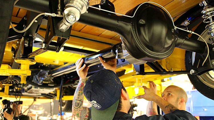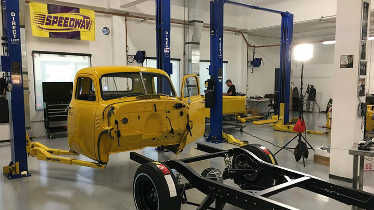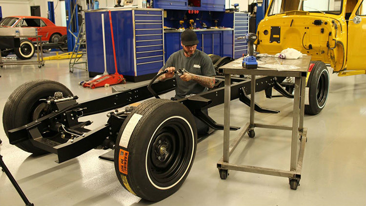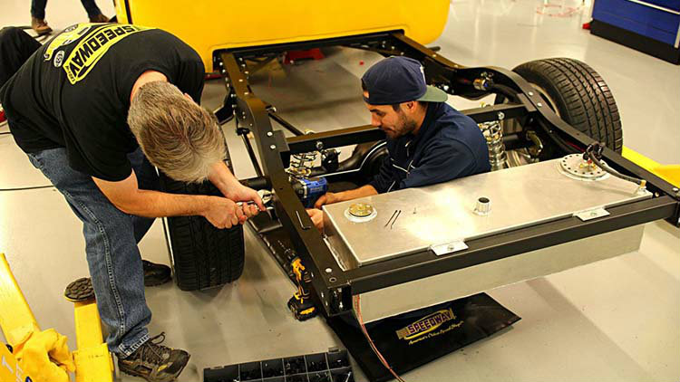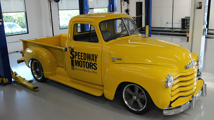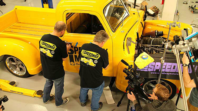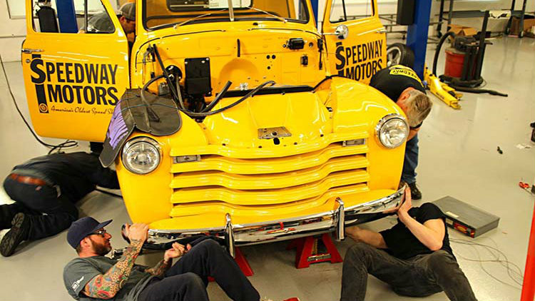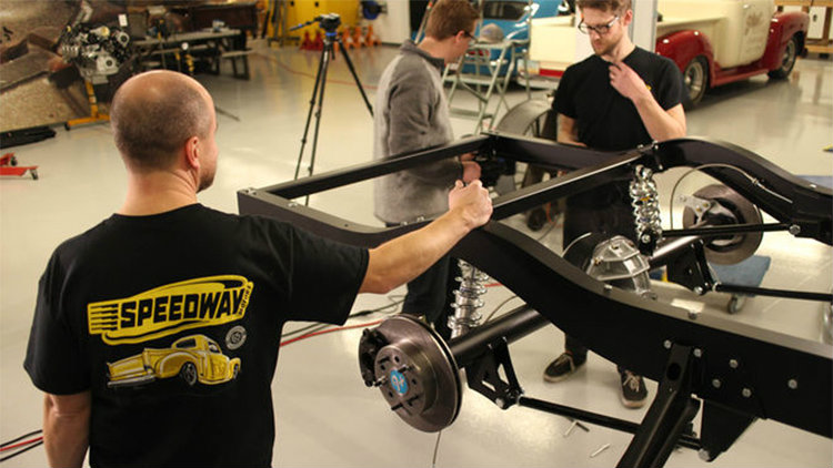 - Speedway Motors, Inc. - IFS and triangulated 4-link 9-inch rear, aluminum EFI fuel tank, Omega Kustom quad gauge set