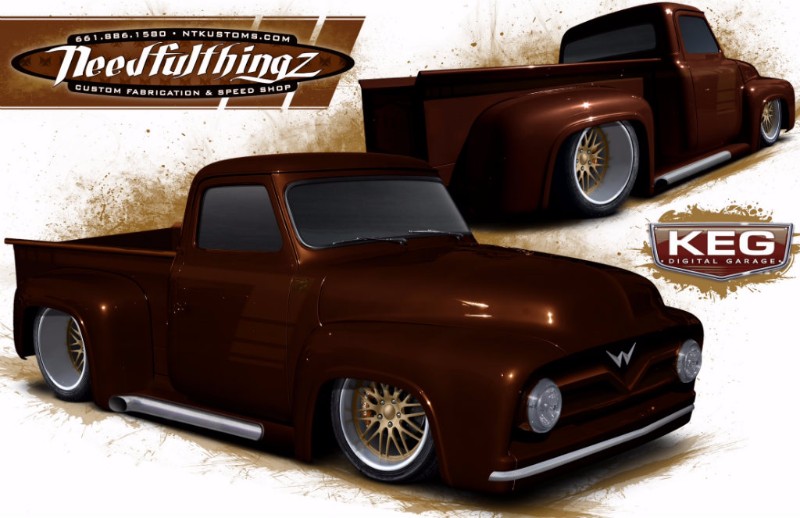This amazing truck was brought to Needfulthingz Hot Rod Shop in Lancaster, Ca. for total redesign and restoration by the owner in 2014. Since the Truck had a Coyote 5.0 engine, the customer wanted the paint color to be brown and we live in the high desert, the name "The Coyote" was born. This theme based truck represents our idea of what Wile E. Coyote would have built if he wanted to chase down that crazy old Roadrunner! Owner-Operator of Needfulthingz Hot Rod Shop, Lukasz Granicy, put his heart & soul into this build. With his expertise and creative innovational foresight, no aspect of this truck was untouched. TIG welded from the frame up, The Coyote came to life! Thanks to our multipal generous sponsors and our staff's devotion, The Coyote has become a fan favorite at SEMA and a contestant in Battle of the Builders along with various shows through out California.