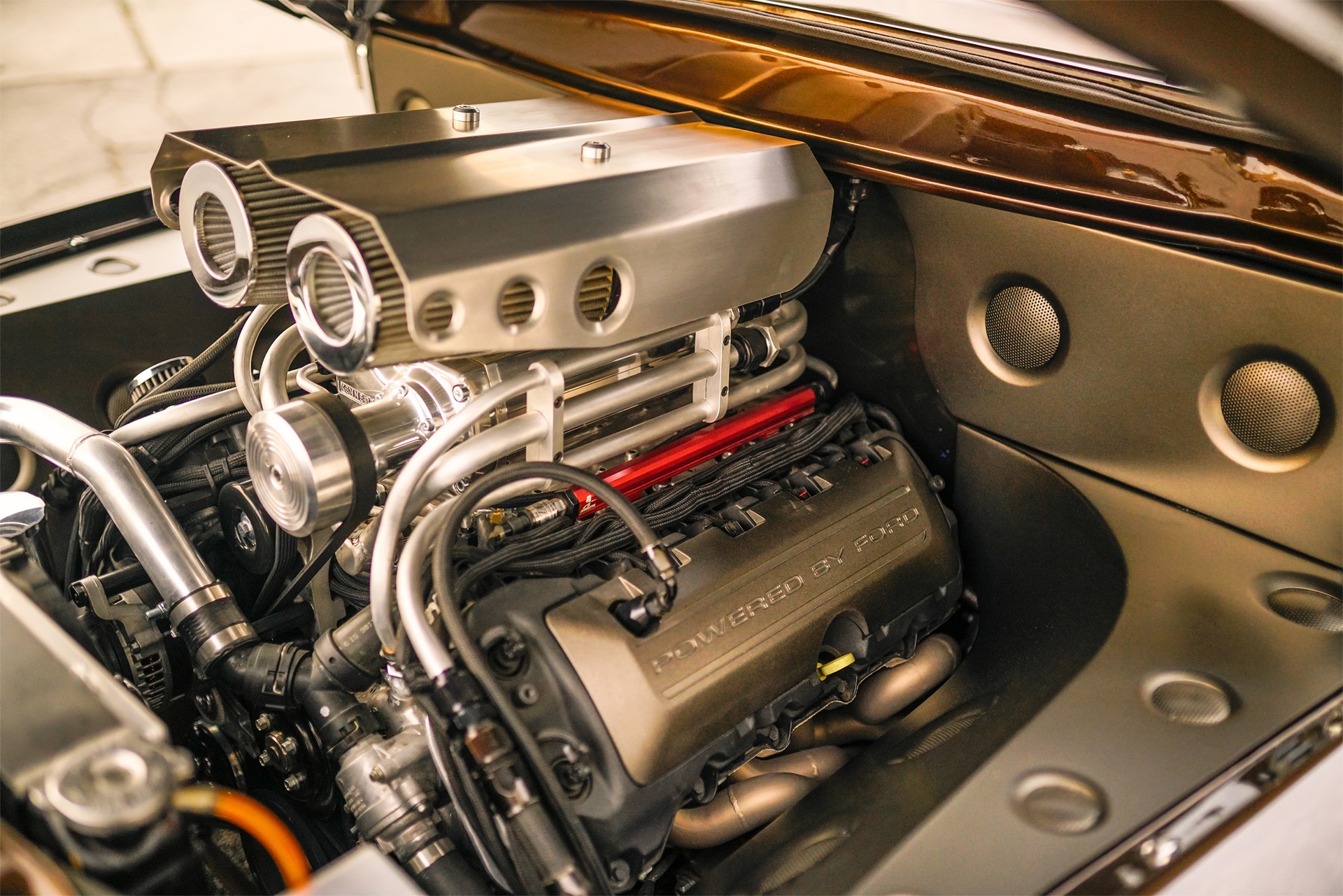 - Mustang 5.0 coyote engine with a whipple supercharged blower on modern engine with a pro-touring street truck feel producing 700 horsepower.