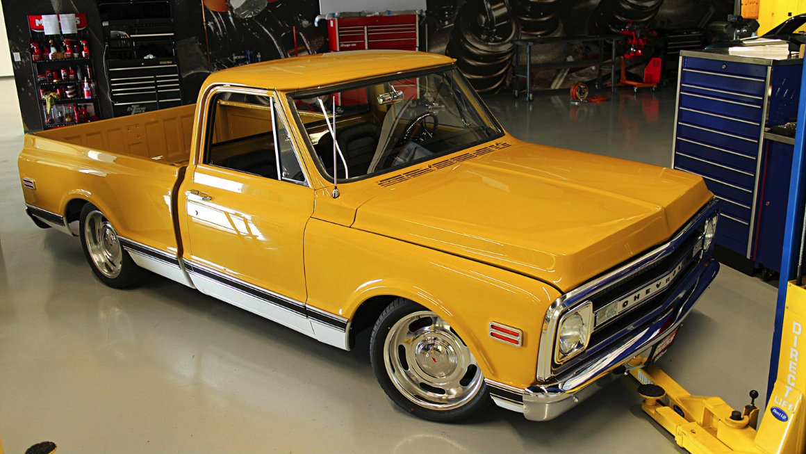 Later in the afternoon, however, the 18-inch American Legend Cruiser wheels freshly mounted with Falken rubber arrived, which allowed the C10 to officially become a “roller.” And to put a cherry on top, local striper Phil Whetstone stopped by to add a little color to the Bow Tie hubcaps.