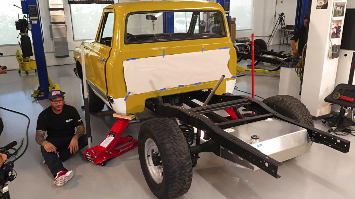 Brothers developed their kit—which works on C10 and C20 frames—to take all the guesswork (and repeated measuring, as they claim) out of an otherwise-daunting task. Well, the truck was rolled into the tech center at 9 a.m. and wouldn’t you know it—by lunchtime the “long” bed was no more. Granted, there were a few extra hands on hand, so to speak, not to mention a grip of cameramen to avoid tripping over, but even that did little to slow progress for Jason, Ryan, Christian, et al.