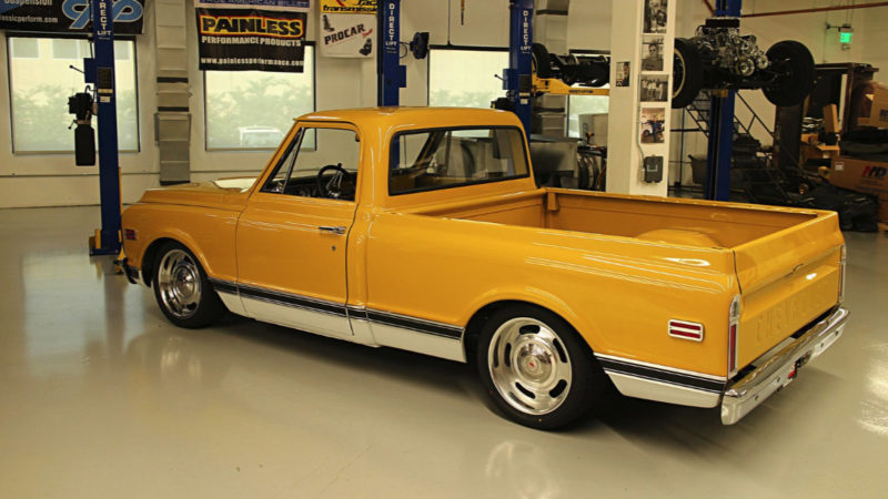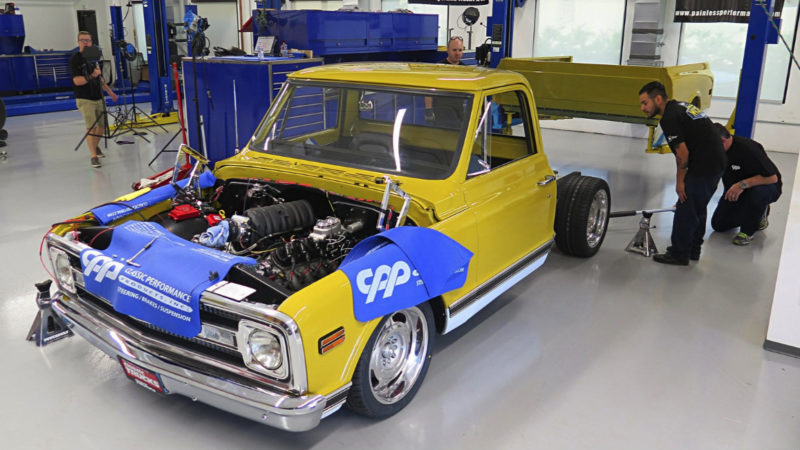 And that’s precisely what transformed one week this past October: Monday morning at 8 a.m. sharp, the longbed (with its fresh paint, courtesy of Thunder Alley out of Mesa, Arizona) was driven into TEN’s Tech Center, and by 11 p.m. Friday night it was leaving layers of burnt rubber in the parking lot outside. In the course of five full days, the truck was taken from a long-wheelbase 3/4-ton hay hauler—the frame shortening portion with Brothers Trucks taking just a few hours—to shorty hauler of the more potent kind … one that hauls you by the seat of your pants thanks to its Mast Motorsports 700-plus horsepower LS7/Performance Automatic 4L80E and full CPP performance suspension, brake, and steering package. And as all this was taking place, it was brought to you in spurts of real time via Facebook Live, not to mention the numerous Instagram videos and posts, and of course, your twice daily dose of Hot RodNetwork web updates.