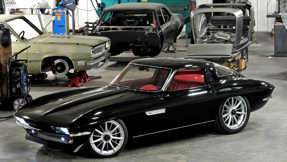This ‘65 Corvette was a Great 8 Finalist in the 2013 Detroit Autorama. Seven years in the making, this one you can stare at it all day and continue to find custom touches you haven't seen before. We designed and machined over 200 pieces ranging from wheels, to instrumentation, from one-off headlights and taillights to various exhaust and intake vents. Extensive body messaging lead to a totally re-proportioned “Vette sprayed in Glasurit “Lamp Black” paint. The bright red custom leather interior was done by Paul Adkins.