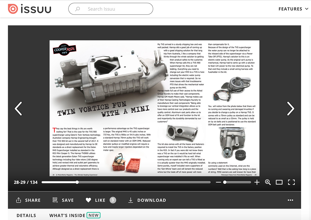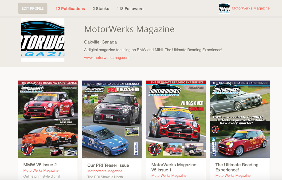 It is an online print style digital magazine focusing on the BMW and MINI lifestyle. Featuring cars, events, people and racing from all over the world, MotorWerks Magazine is your source for the online BMW and MINI experience. Featuring full color double page spreads and Flip-page technology for that rich viewing experience. We run articles by people like noted racer and driver coach Ross Bentley, Henry Neal, son of former BTCC Champion Matt Neal, MINI JCW team's James Vance and two-time UK MINI Challenge Champion Chris Knox.